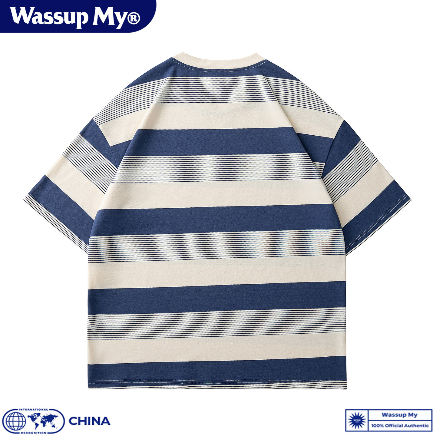 WASSUP MY美式复古条纹短袖T恤男夏季珠地棉休闲宽松大码上衣潮牌