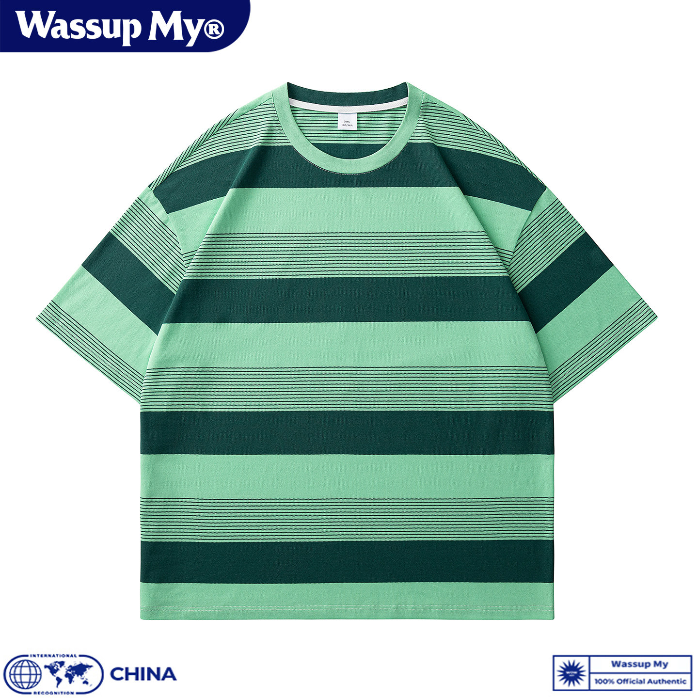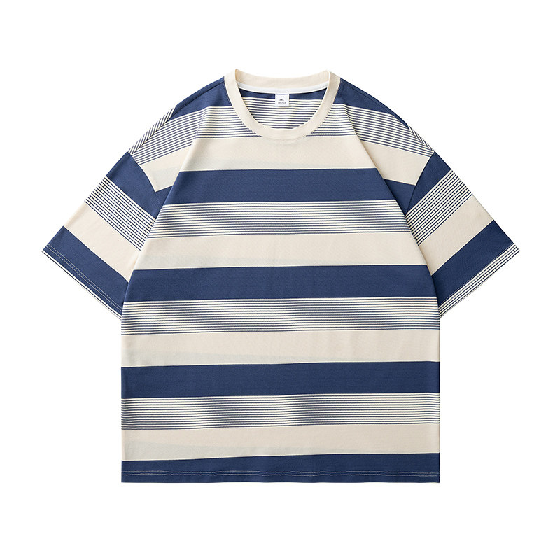 --------------------- WASSUP MY美式复古条纹短袖T恤男夏季珠地棉休闲宽松大码上衣潮牌 【原售价】268元 【现售价】63.3元 【推荐理由】