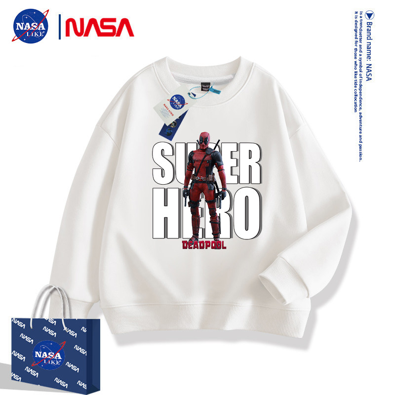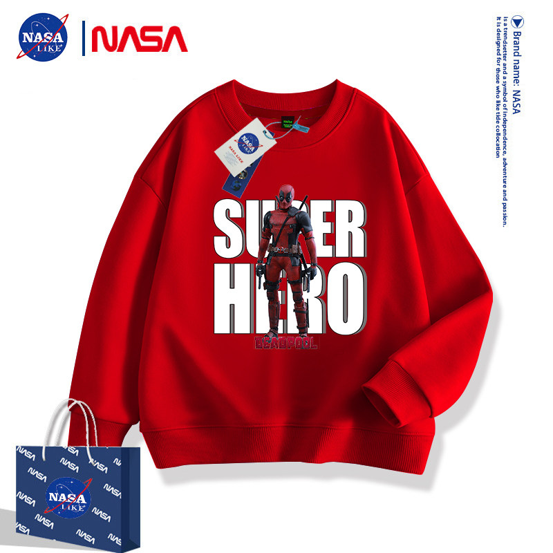 --------------------- NASA联名儿童红色衣服漫威英雄死侍纯棉卫衣男童女童秋冬加绒上衣 【原售价】49元 【现售价】43.1元 【推荐理由】