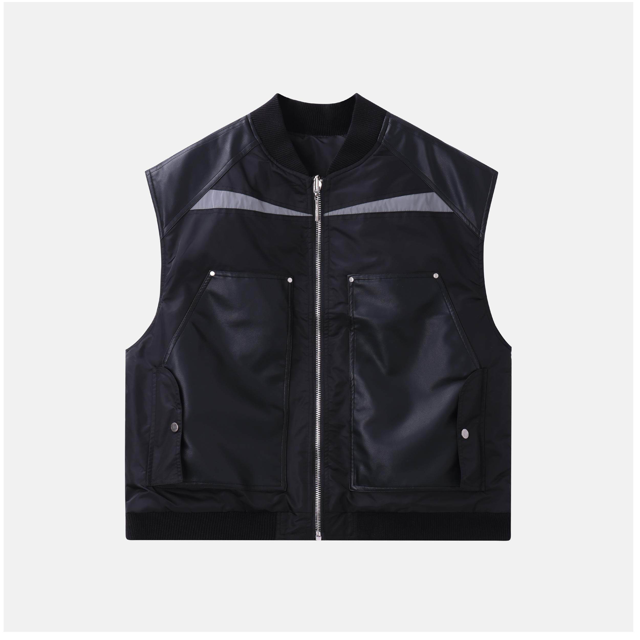 淘宝NIIPLICITY 23AW 反光拼贴皮铆钉马甲双面穿棉服