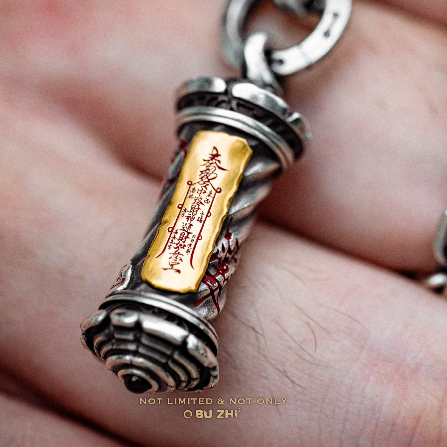 不止不只 国风系列 玄符藏妙筒-吊坠 925银24K贴金 朱砂 潮流复古