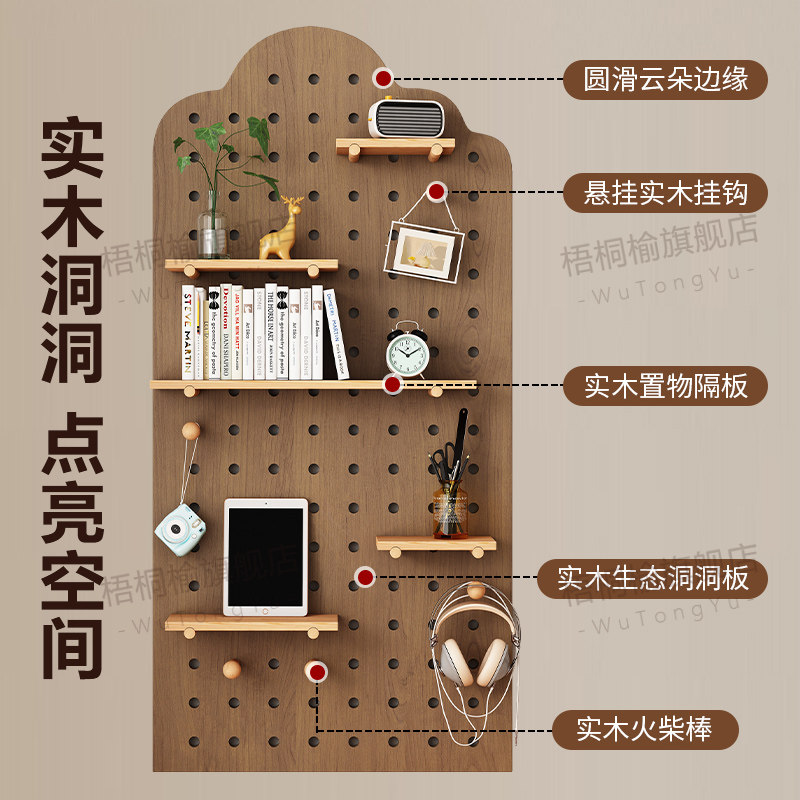 --------------------- 实木洞洞板置物架定制造型墙入户玄关墙面收纳架中古风墙上展示架 【原售价】575元 【现售价】48.65元 【推荐理由】