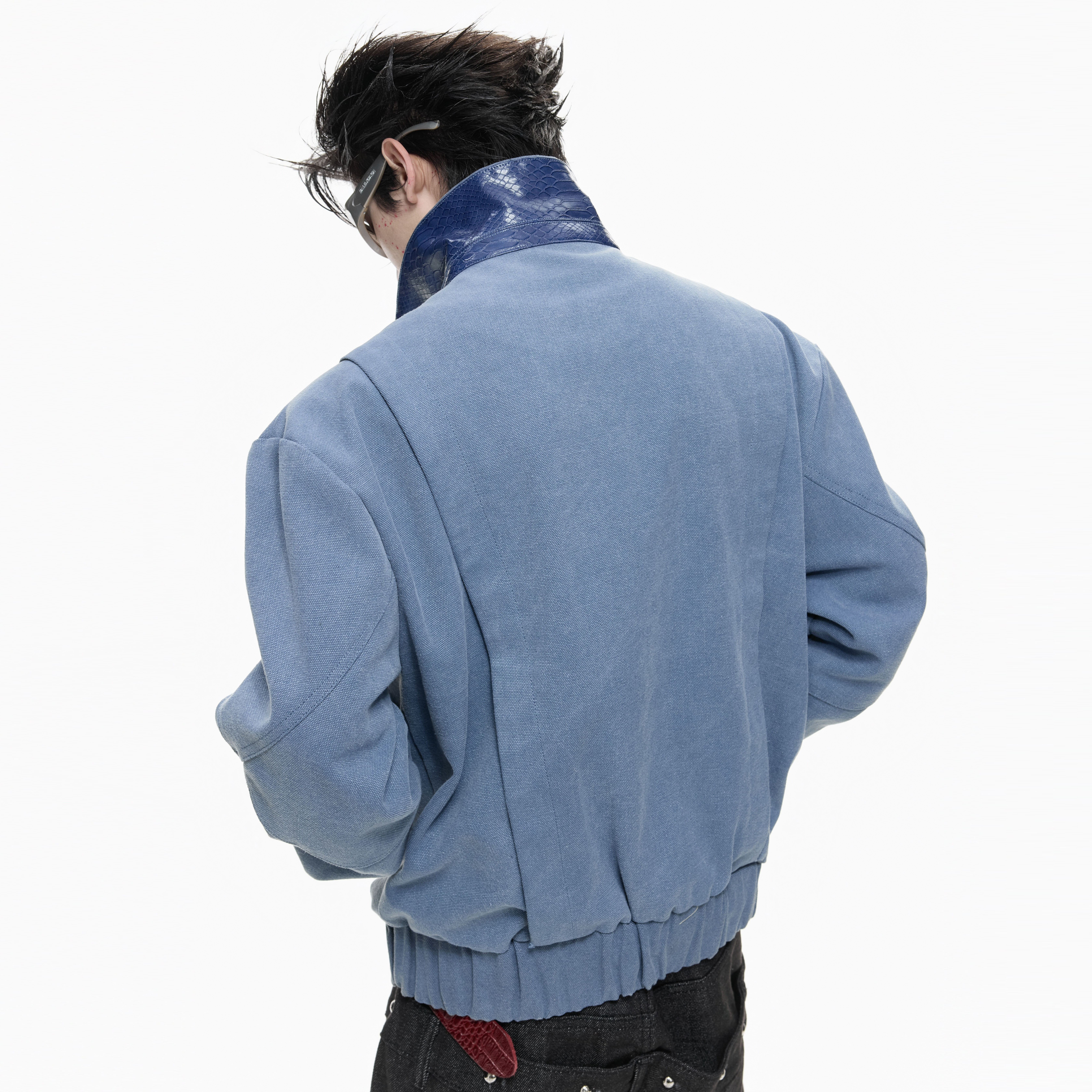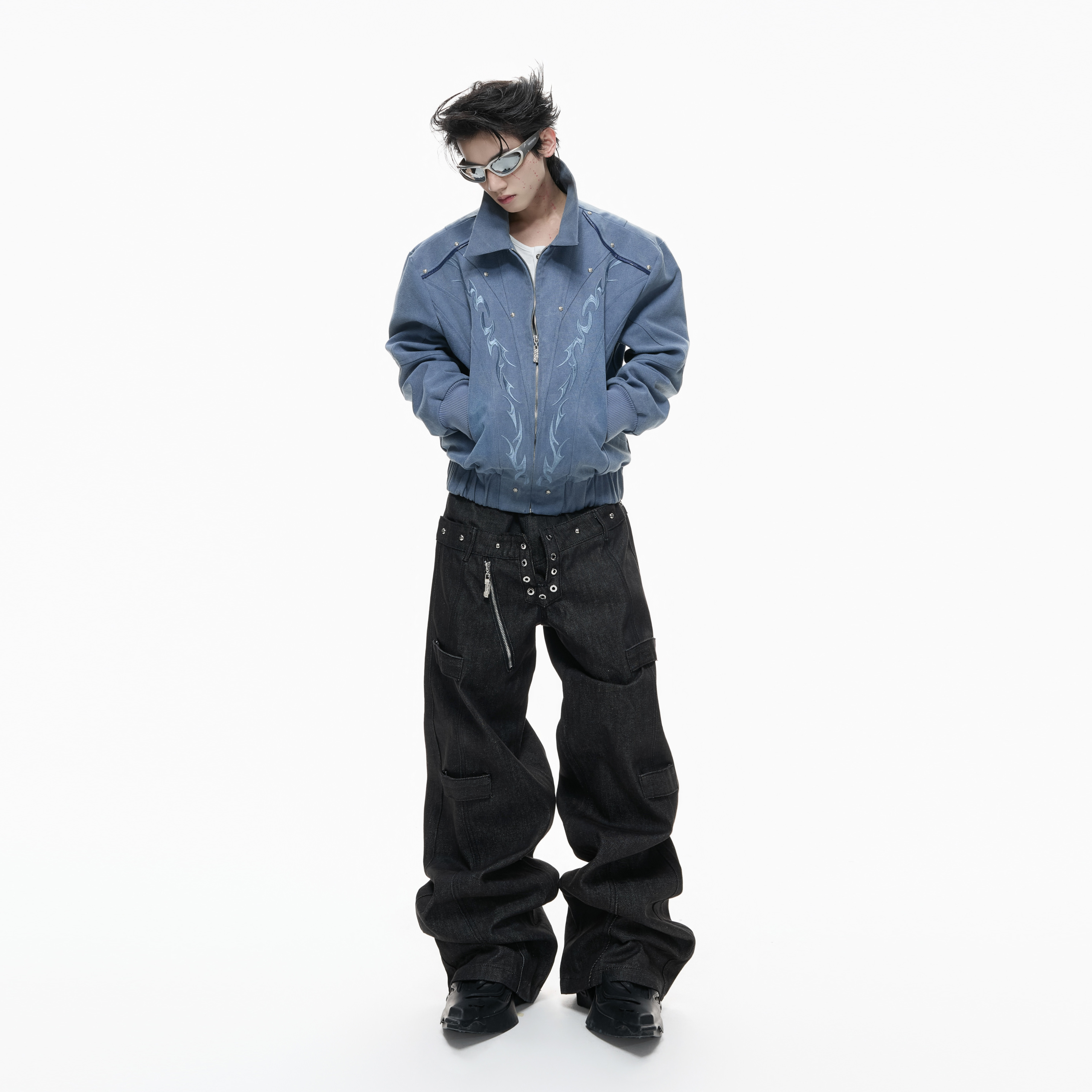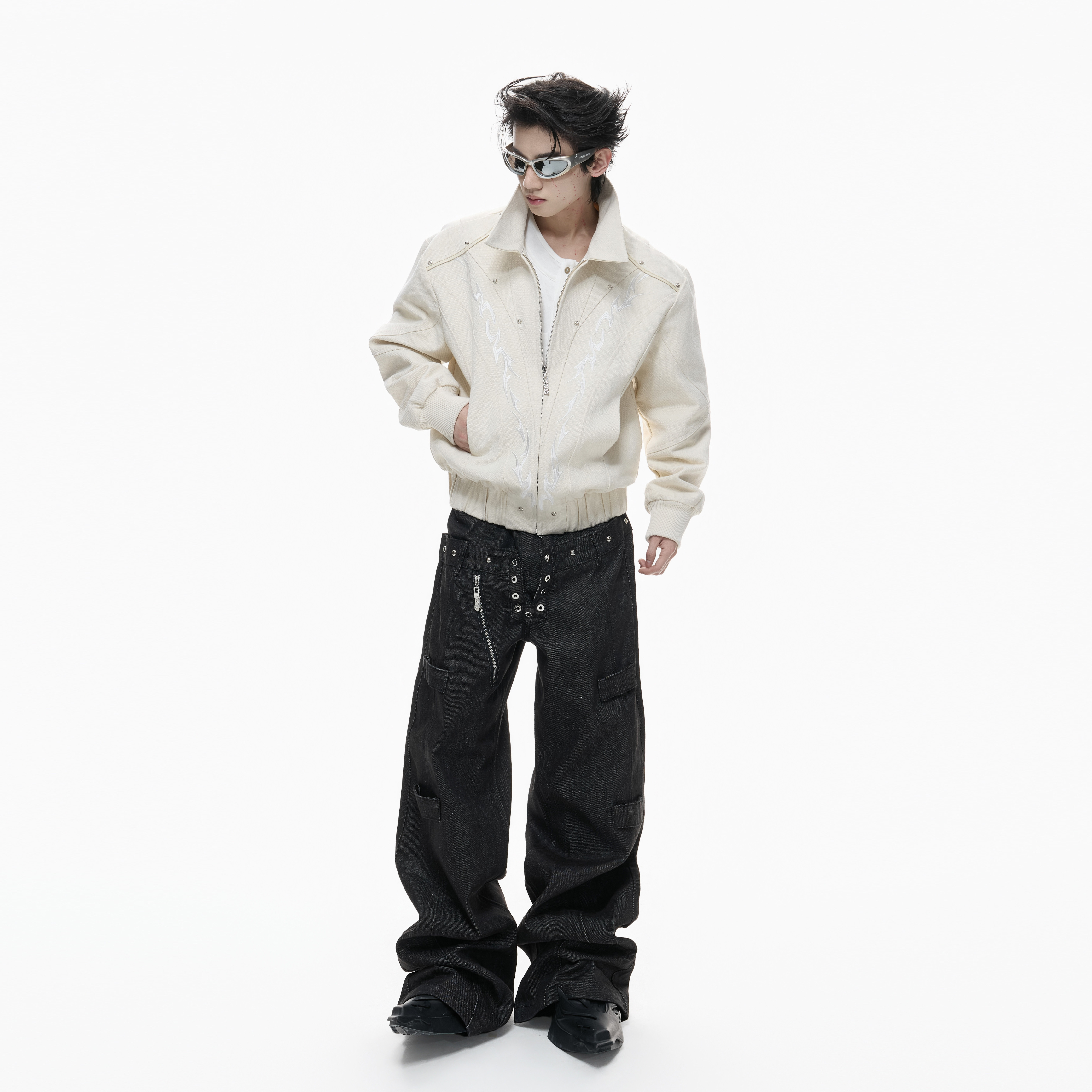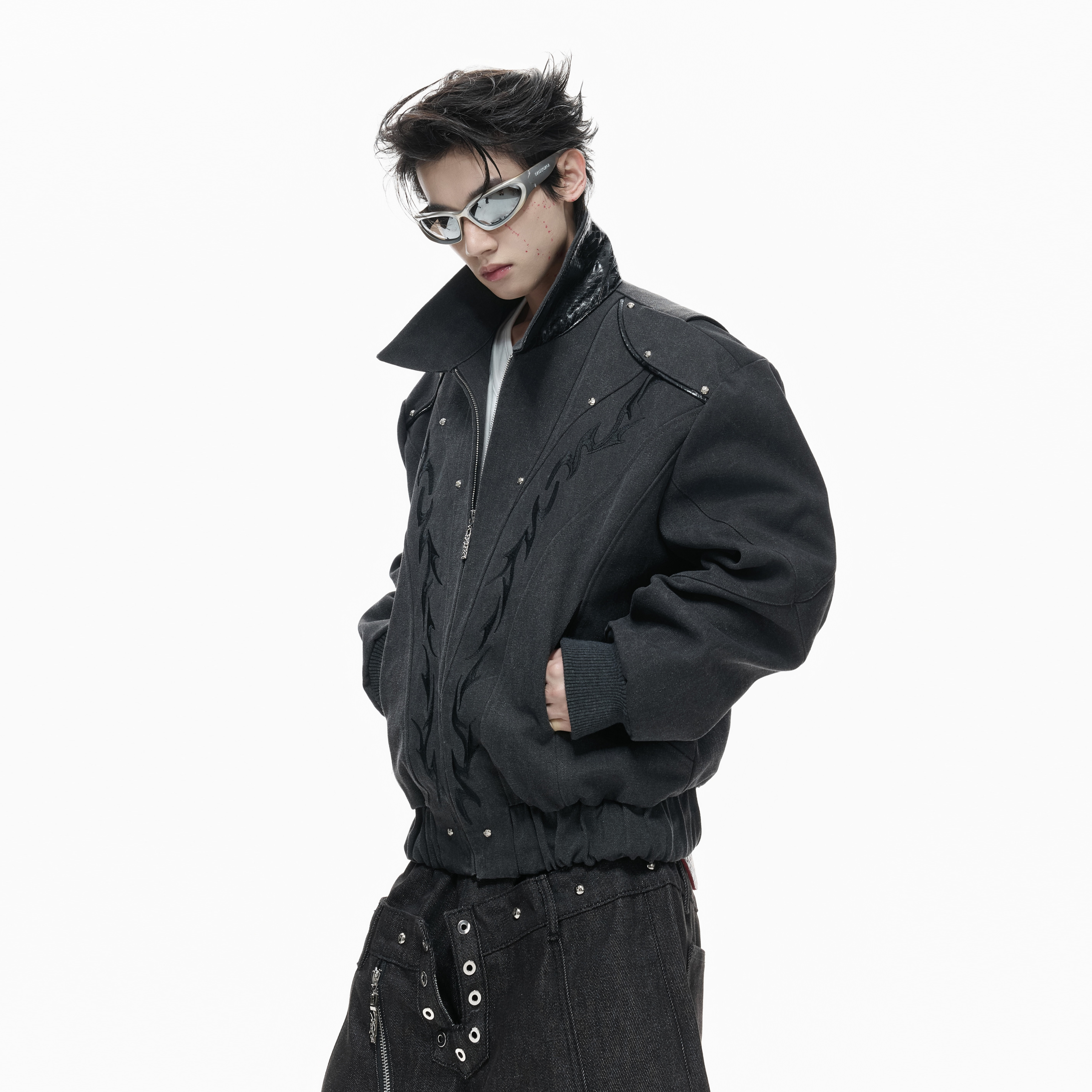 ArguE CulturE赤焰*重磅水洗帆布夹克铆钉刺绣短宽皮领休闲外套
