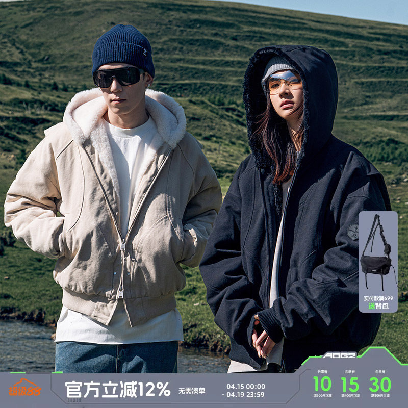 淘宝AOGZ座山雕夹棉外套男女生秋冬季加绒加厚棉袄重磅夹克毛领棉服潮