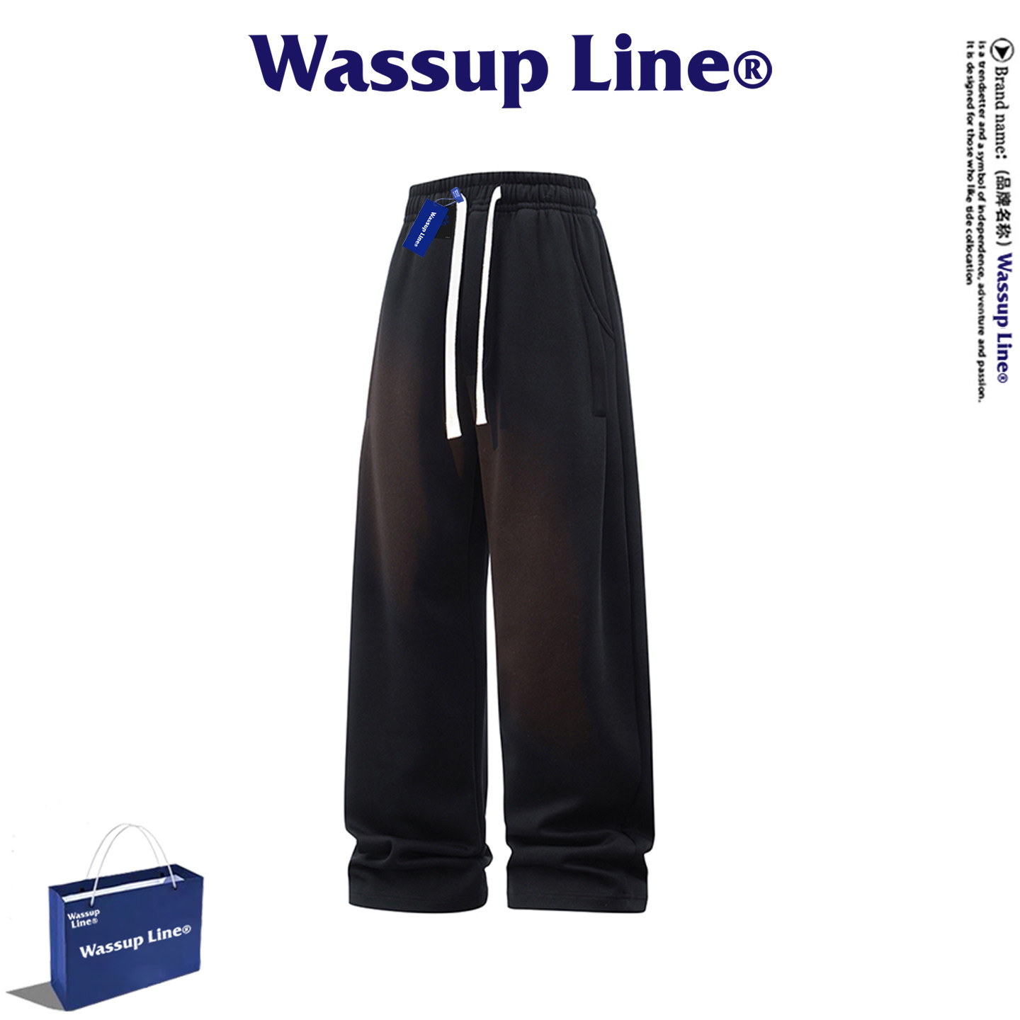 --------------------- WASSUP Line潮牌宽松休闲裤男夏季潮流港风弯刀裤舒适透气长裤 【原售价】398元 【现售价】77.4元 【推荐理由】