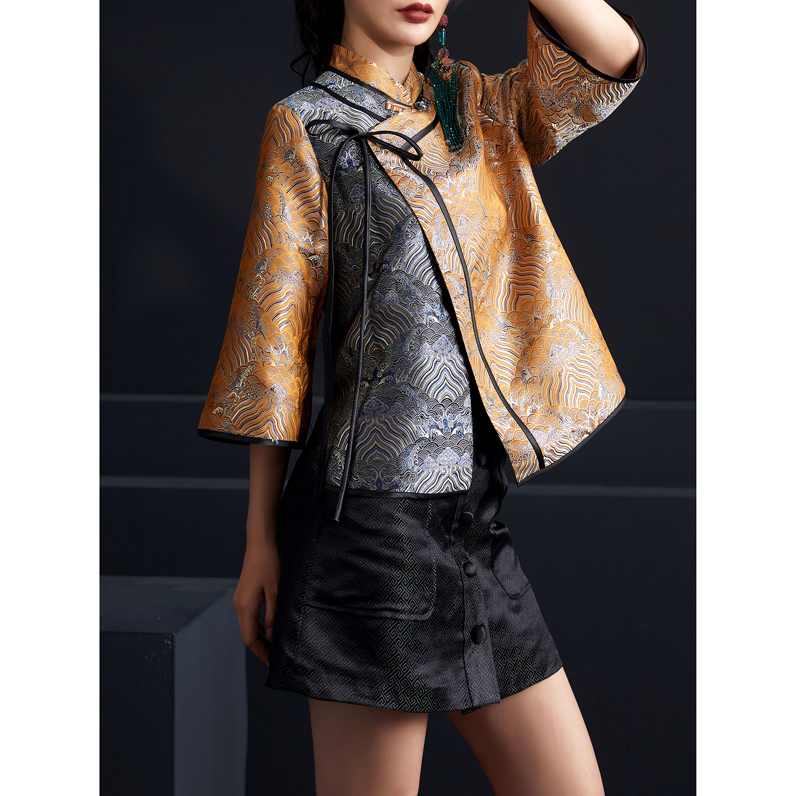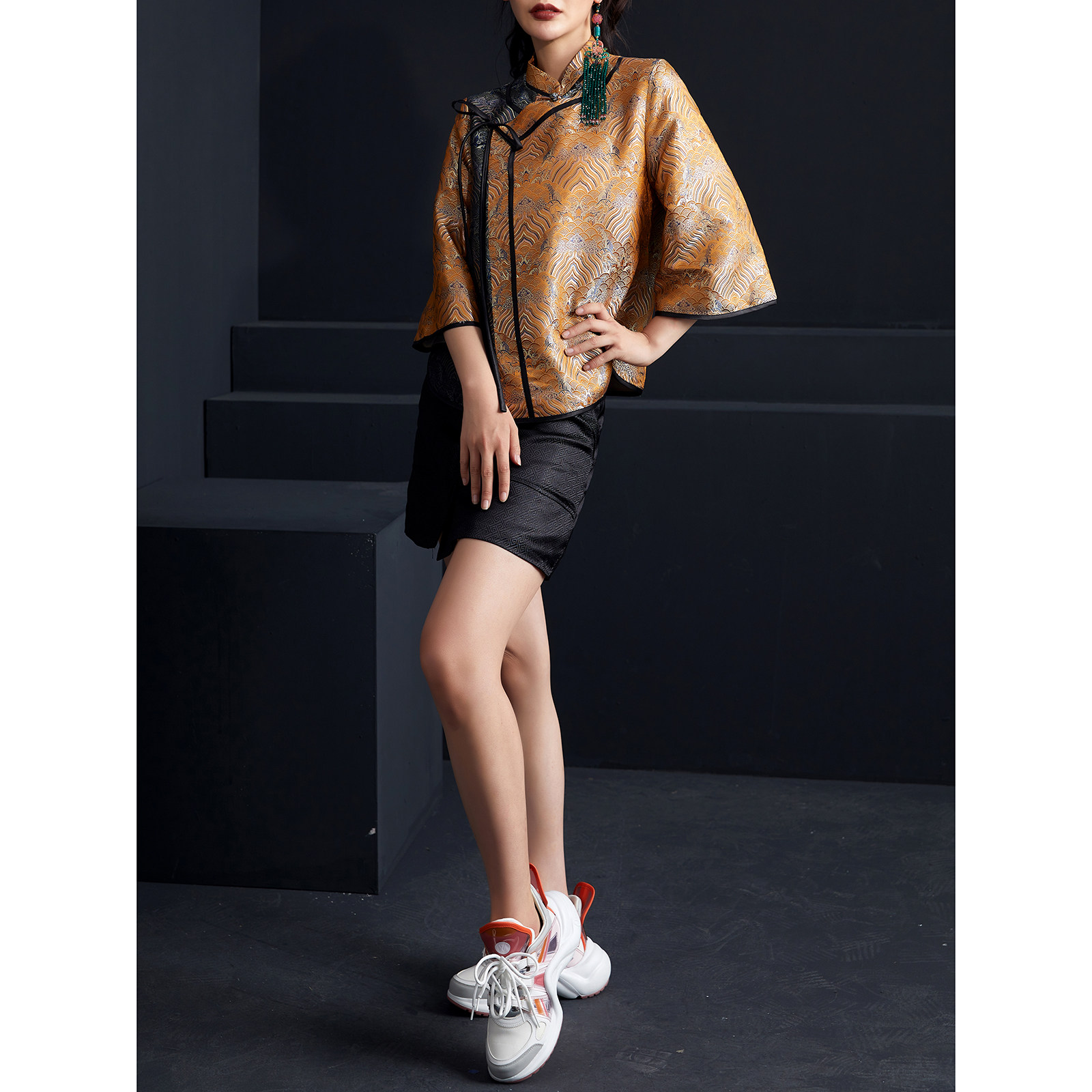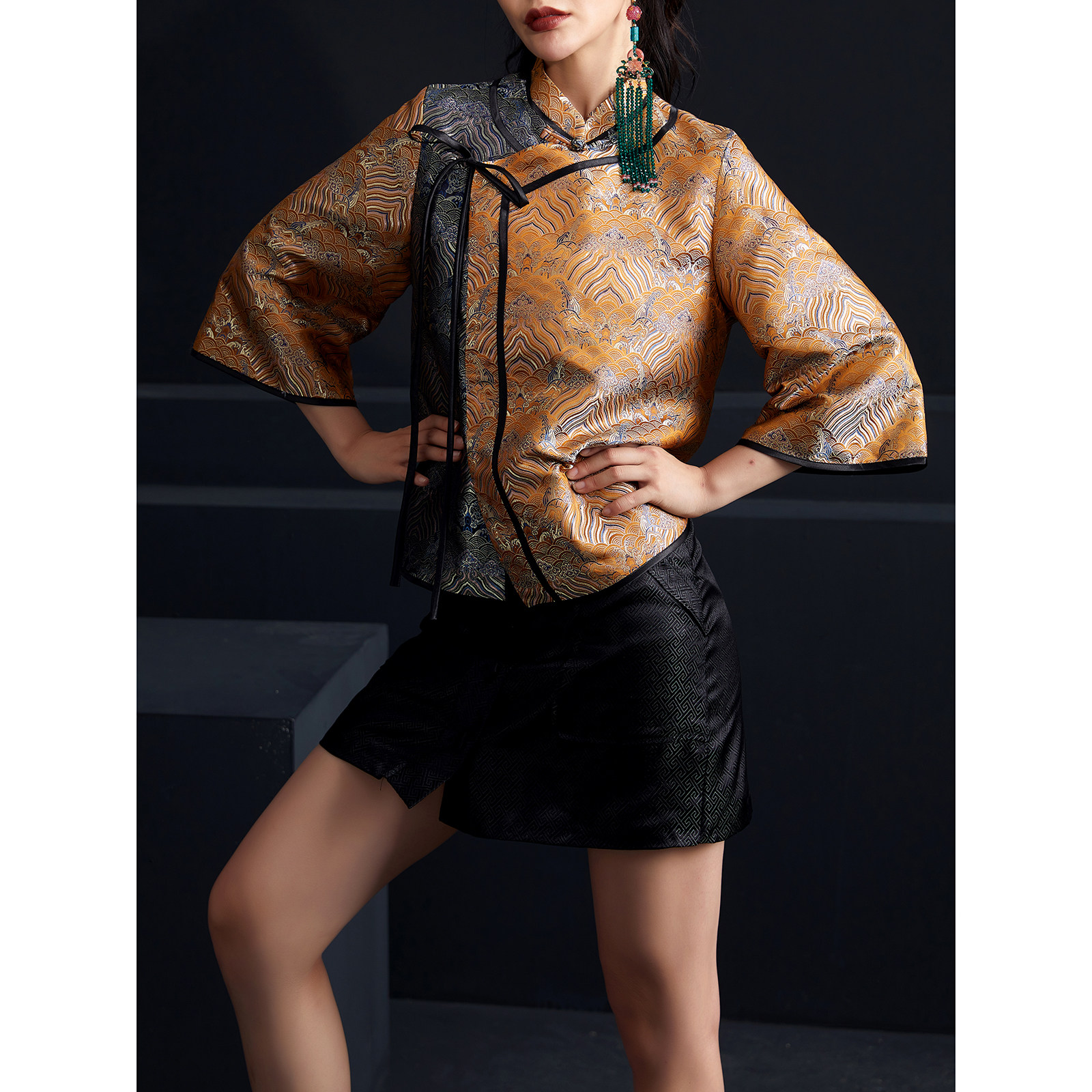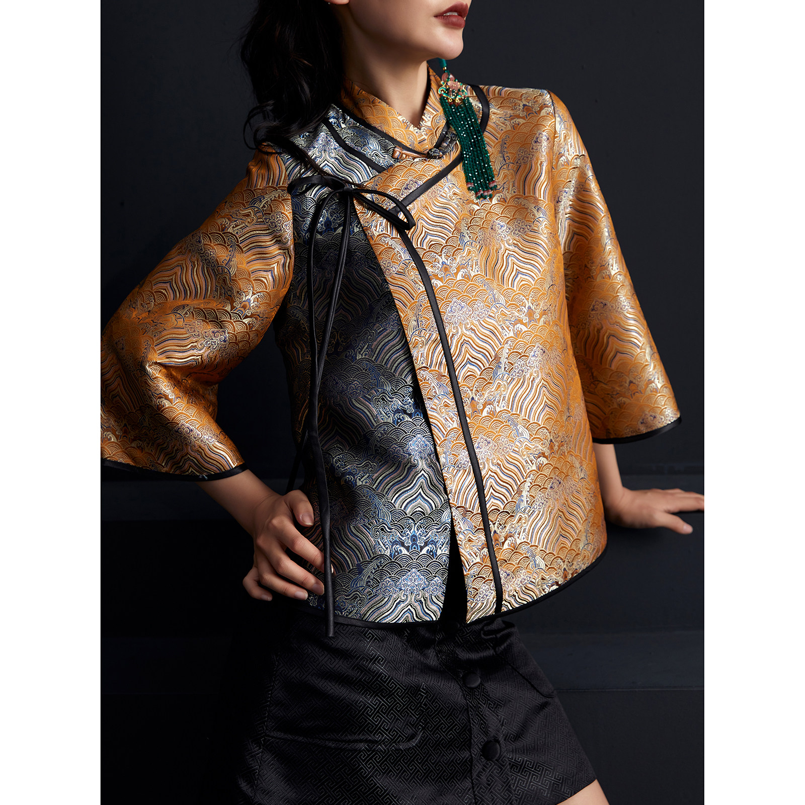 淘宝扶郎2024 原创新国潮女装 日常改良年轻款 拼色唐装 盘扣旗袍上衣