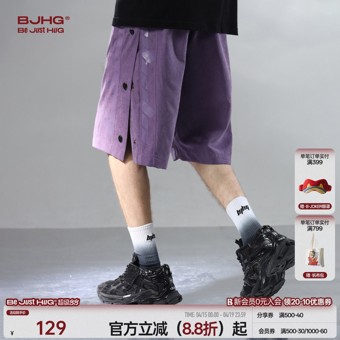 --------------------- BJHG不计后果轻薄透气短裤男夏季潮牌运动裤子休闲紫色宽松五分裤 --------------------- --------------------- 【原价】179元 【券后价】119元