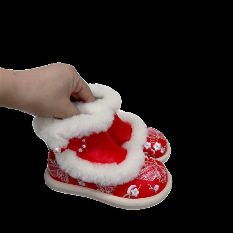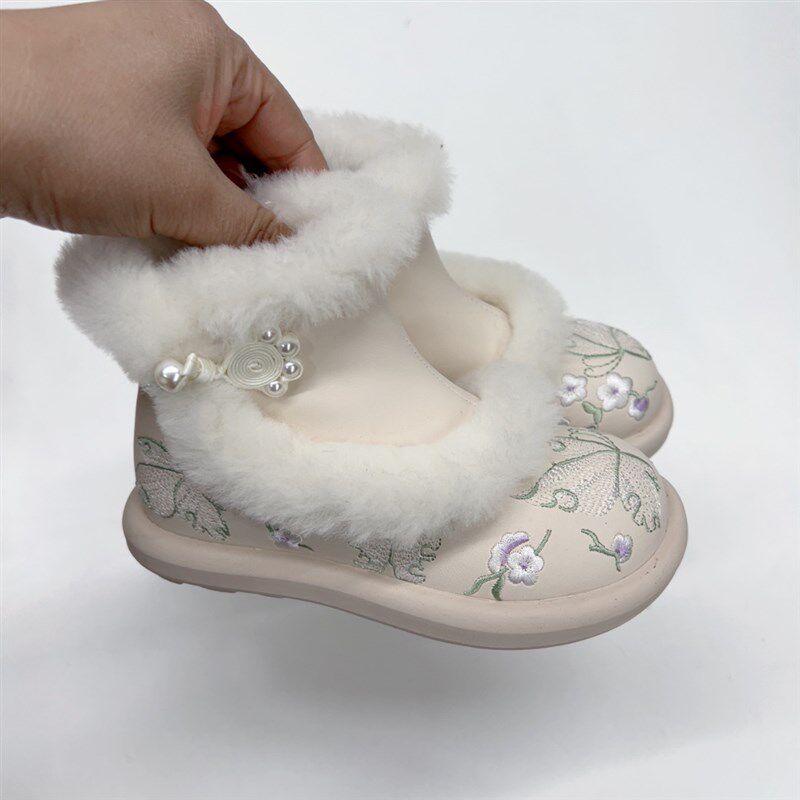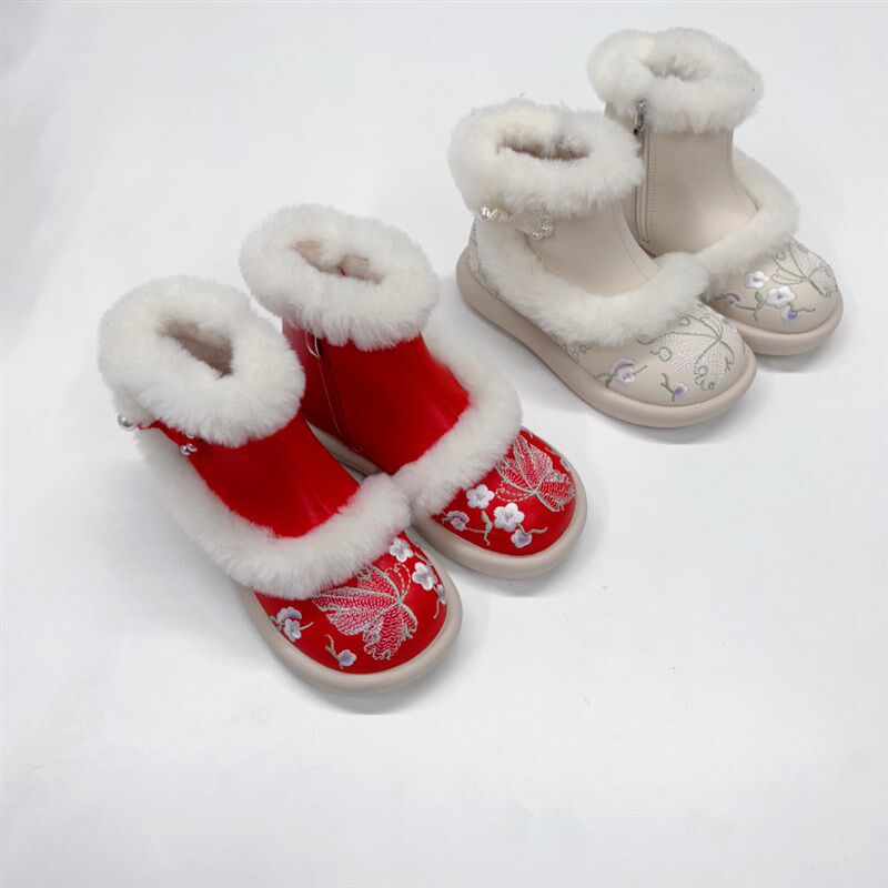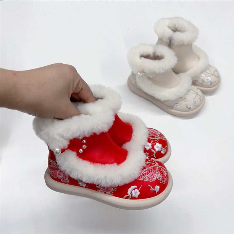 杰西可女童靴子童鞋2023冬季新款汉服中国风马面裙加绒小公主靴