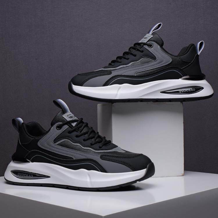 秋冬男鞋2025新款潮流百搭男士运动鞋皮面防水厚底休闲老爹鞋子男