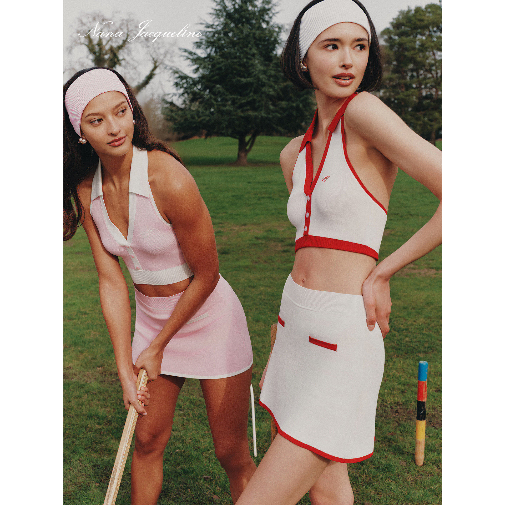 淘宝Nana Jacqueline 26春夏 拼色挂脖时尚套装上衣复古运动网球槌球