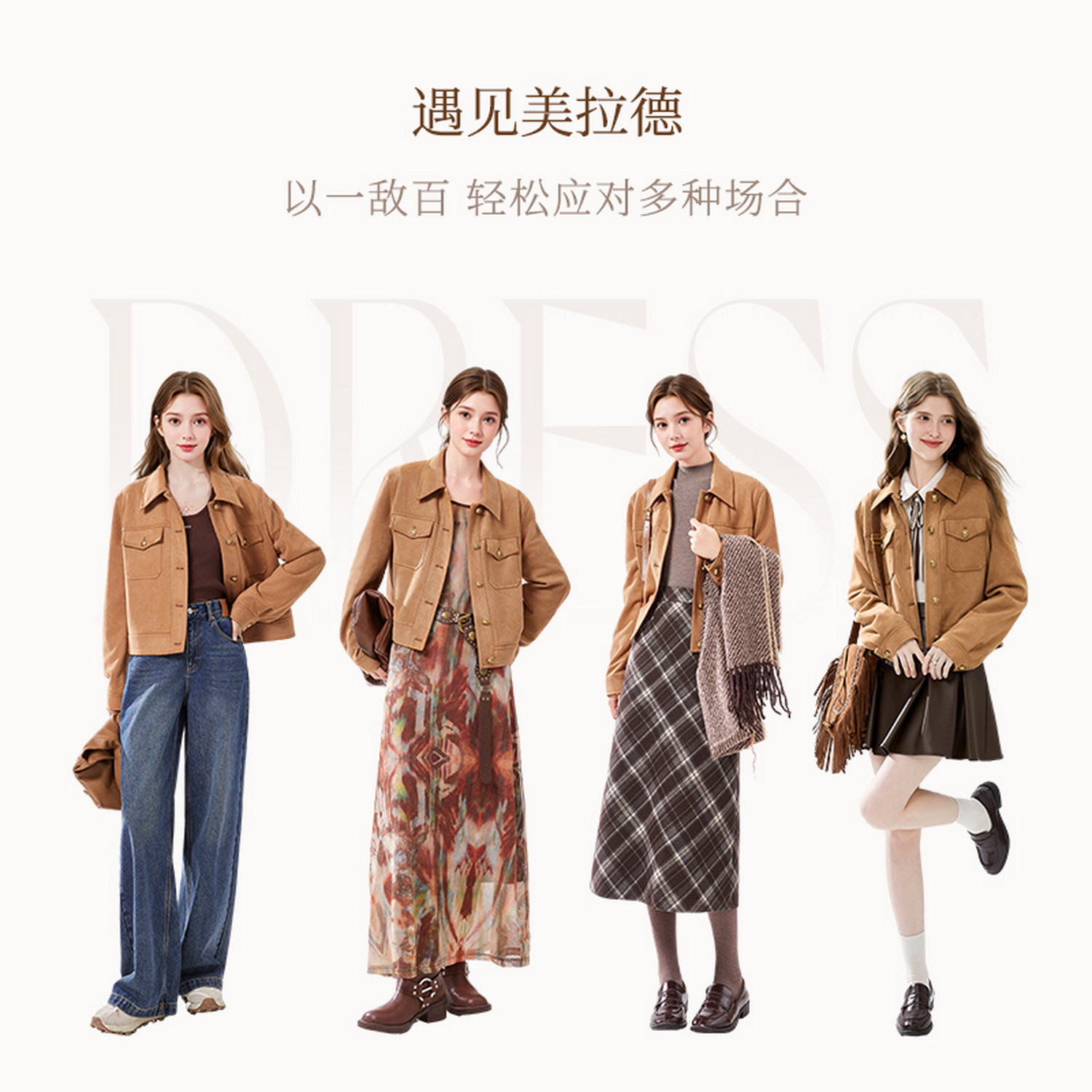 --------------------- 秋水伊人美拉德麂皮绒短外套女2026早秋新款女装工装夹克皮衣上衣 【原售价】1258元 【现售价】289元 【推荐理由】