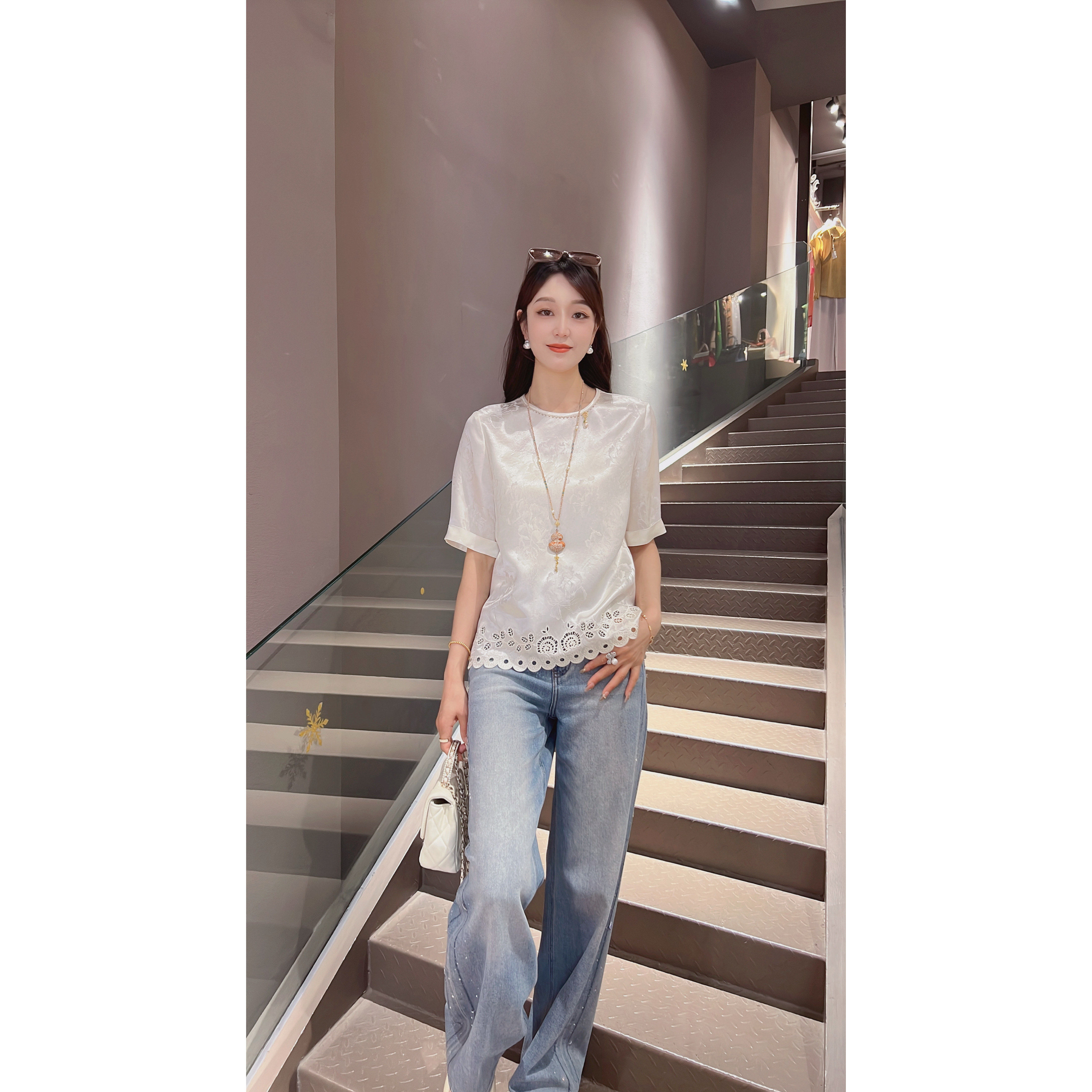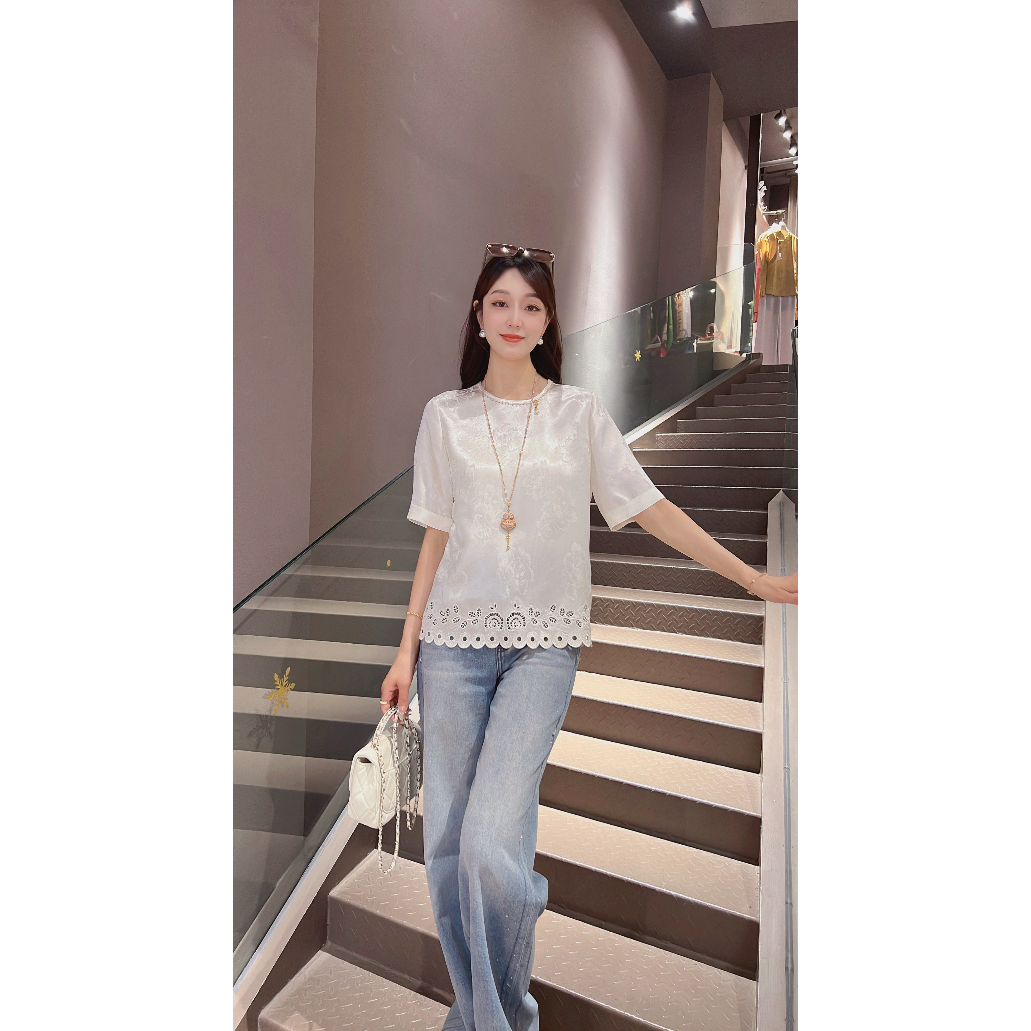 淘宝《晶晶定制》新款国潮风气质百搭醋酸短袖8213