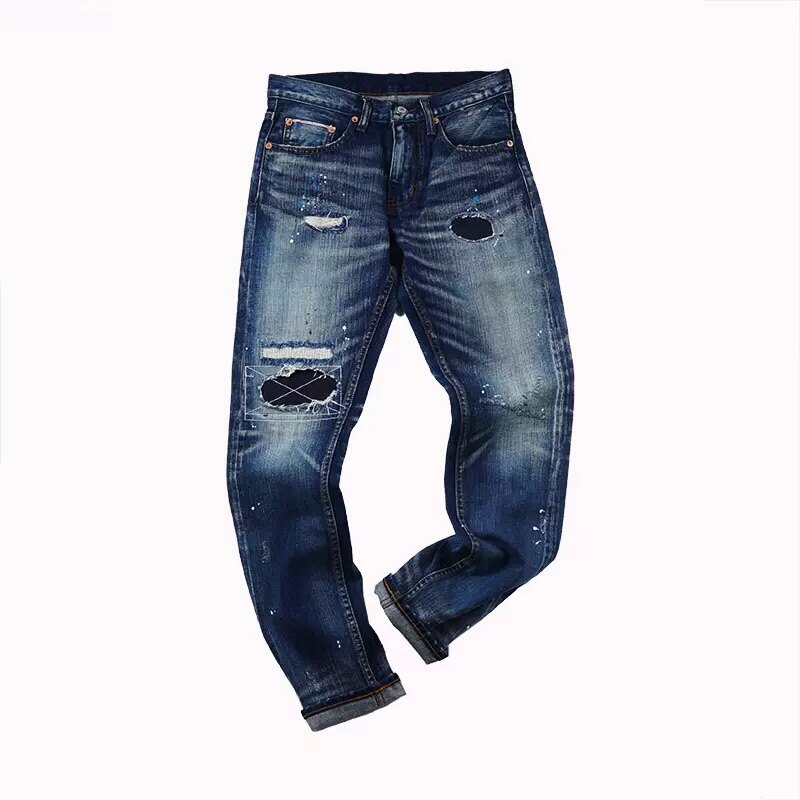 --------------------- 国潮高端手工打磨破洞猫须高深度洗水赤耳单宁修身直筒牛仔裤酱潮 【原售价】898元 【现售价】197.5元 【推荐理由】