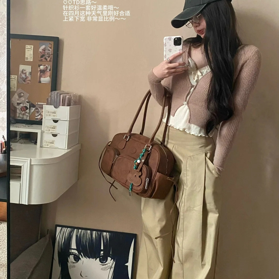 【Fri11~】卡其色休闲阔腿裤子女秋季高腰显瘦宽松慵懒风拖地长裤