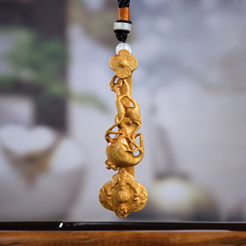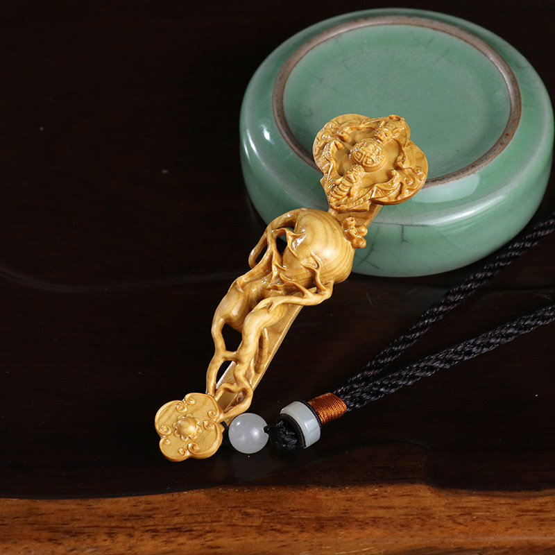 黄杨木雕刻工艺品摆件木质把玩件男文玩手把件汽车小挂件人参如意