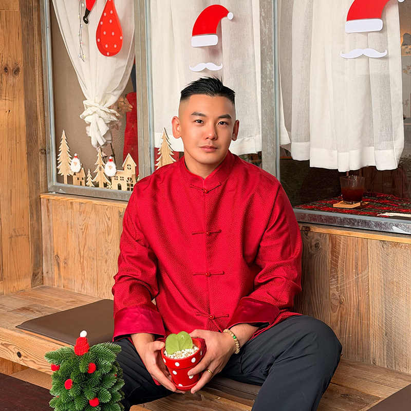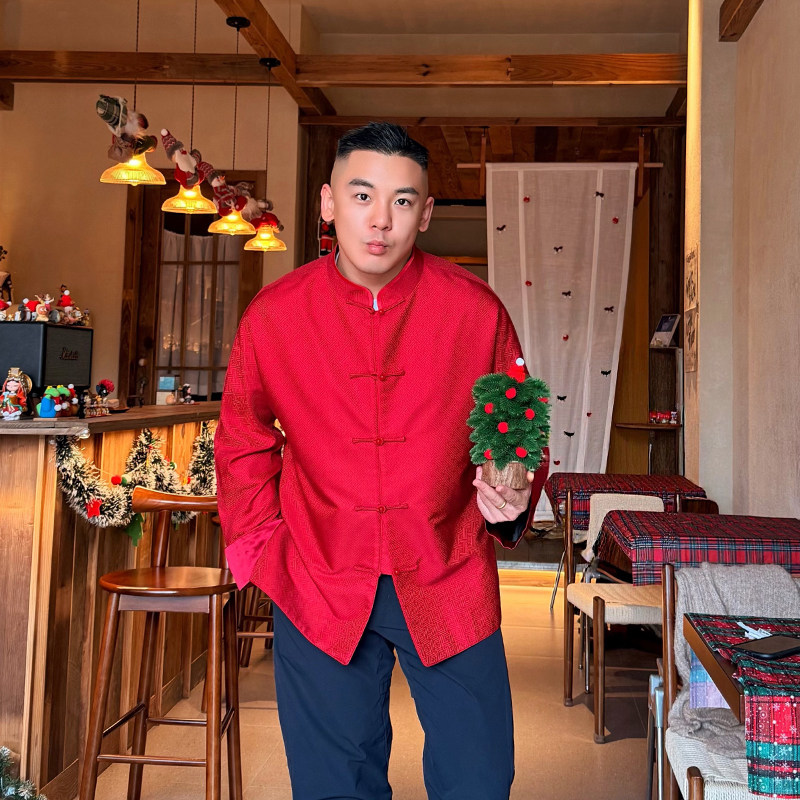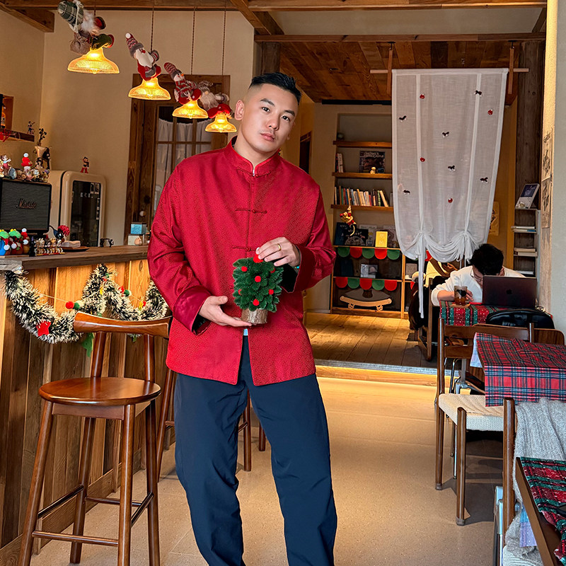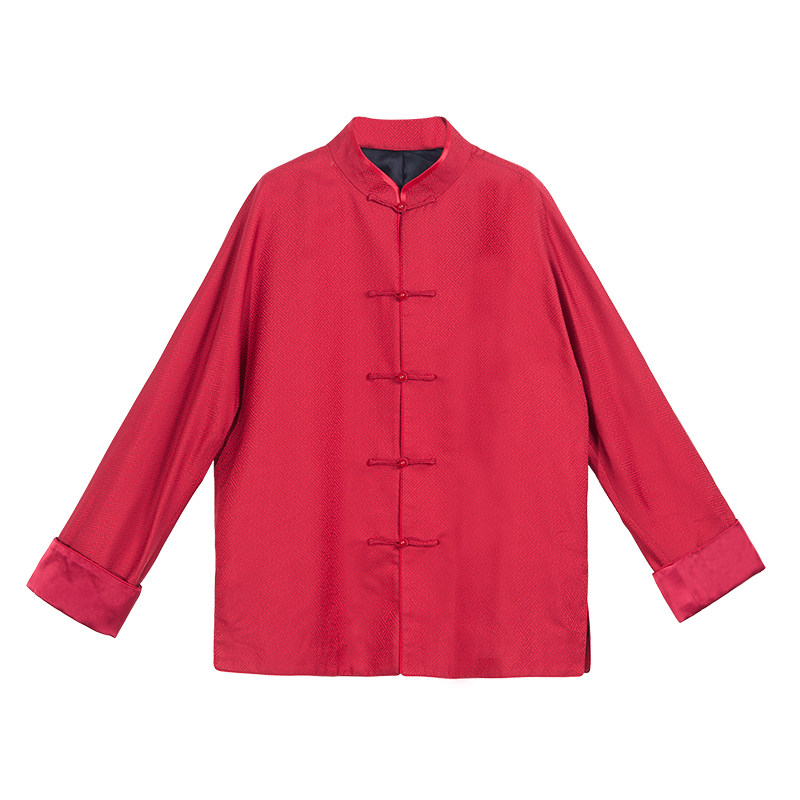 万叶红三重门宋锦男装外套真丝盘扣国潮高级感春秋复古唐装上衣男
