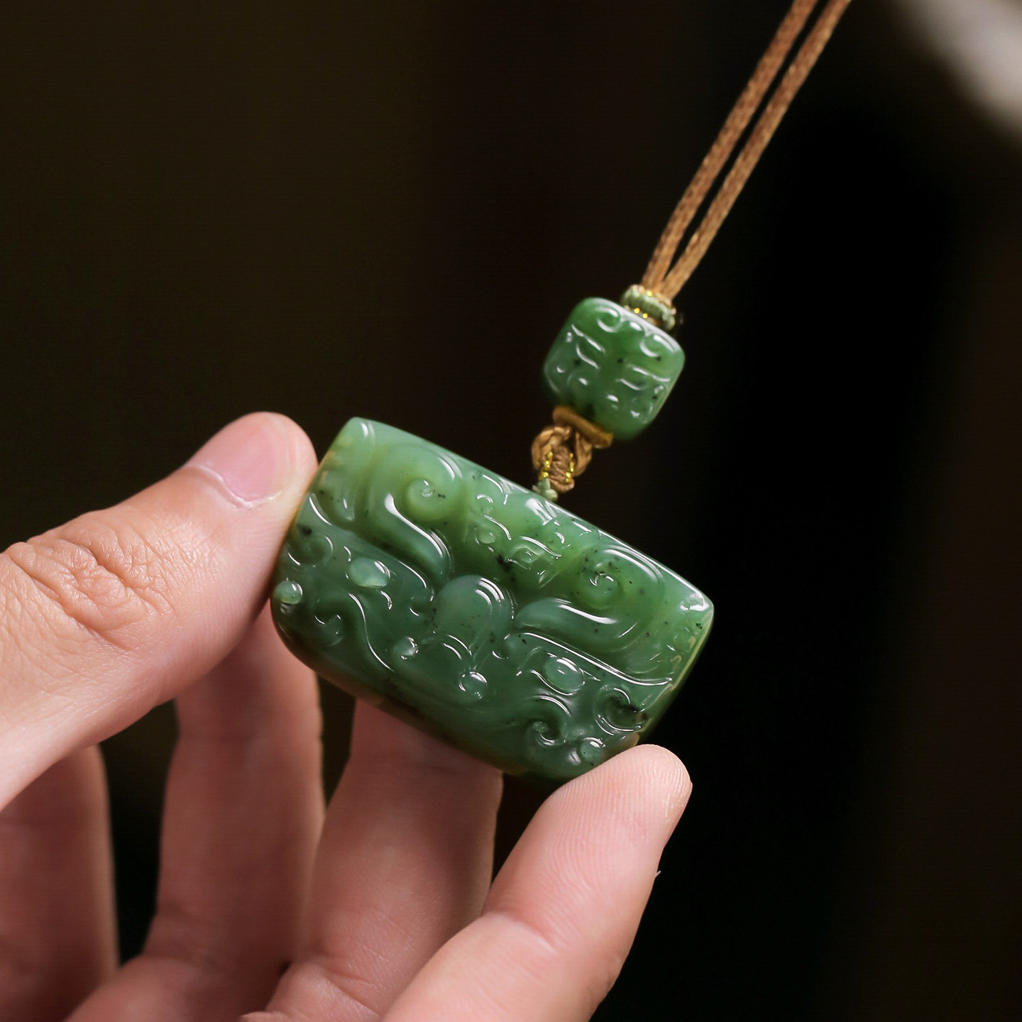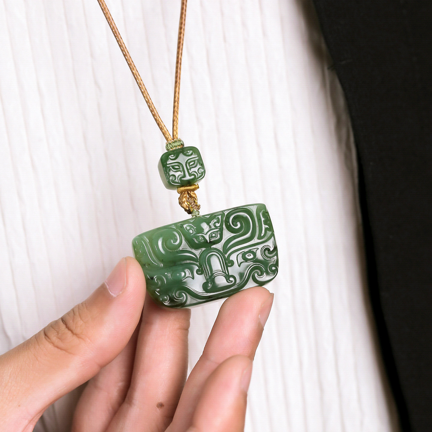 饕餮兽面纹守护 天然和田玉碧玉“吞尽烦恼,只进财宝”国风吊坠