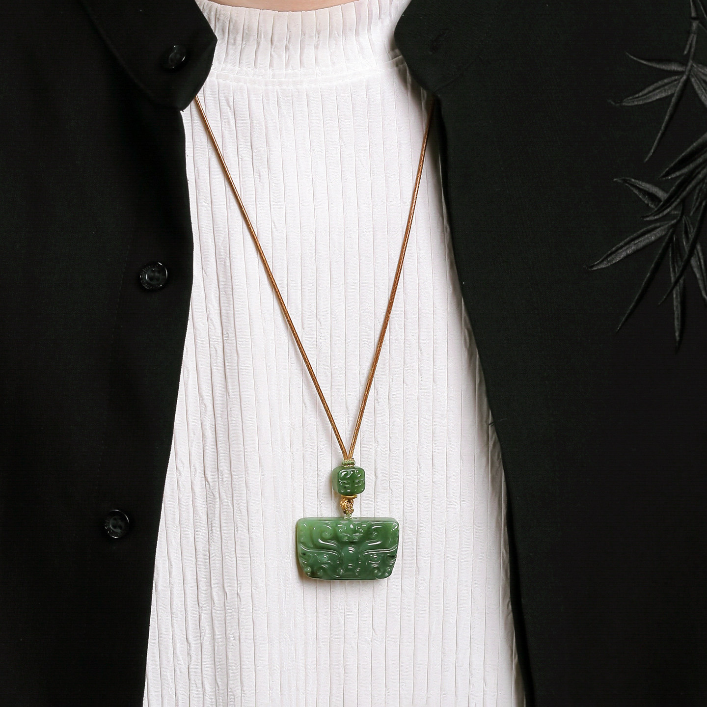 --------------------- 饕餮兽面纹守护 天然和田玉碧玉“吞尽烦恼,只进财宝”国风吊坠 【原售价】399元 【现售价】399元 【推荐理由】