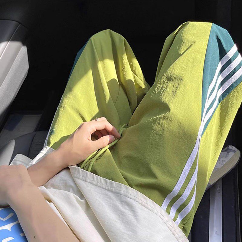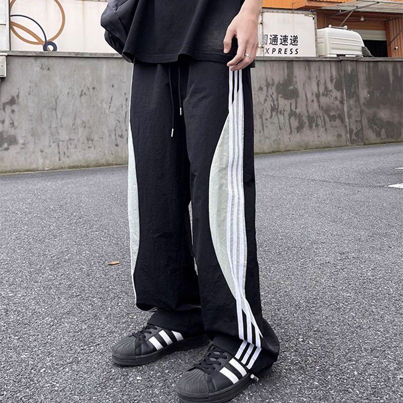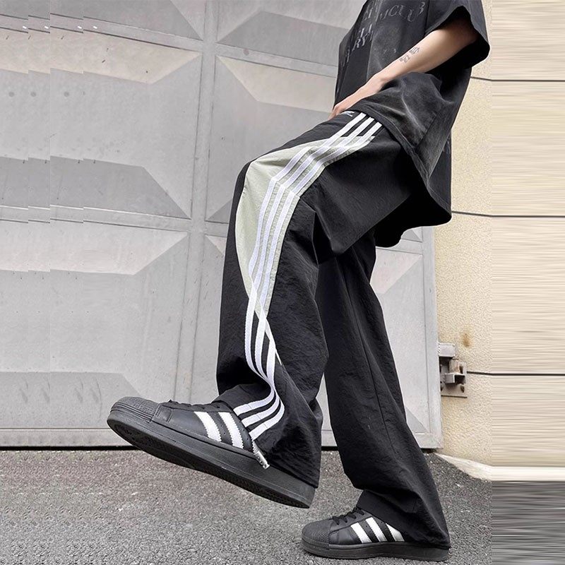 NTBF春秋新款三条杠伞兵休闲裤男款撞色宽松百搭抽绳直筒运动长裤