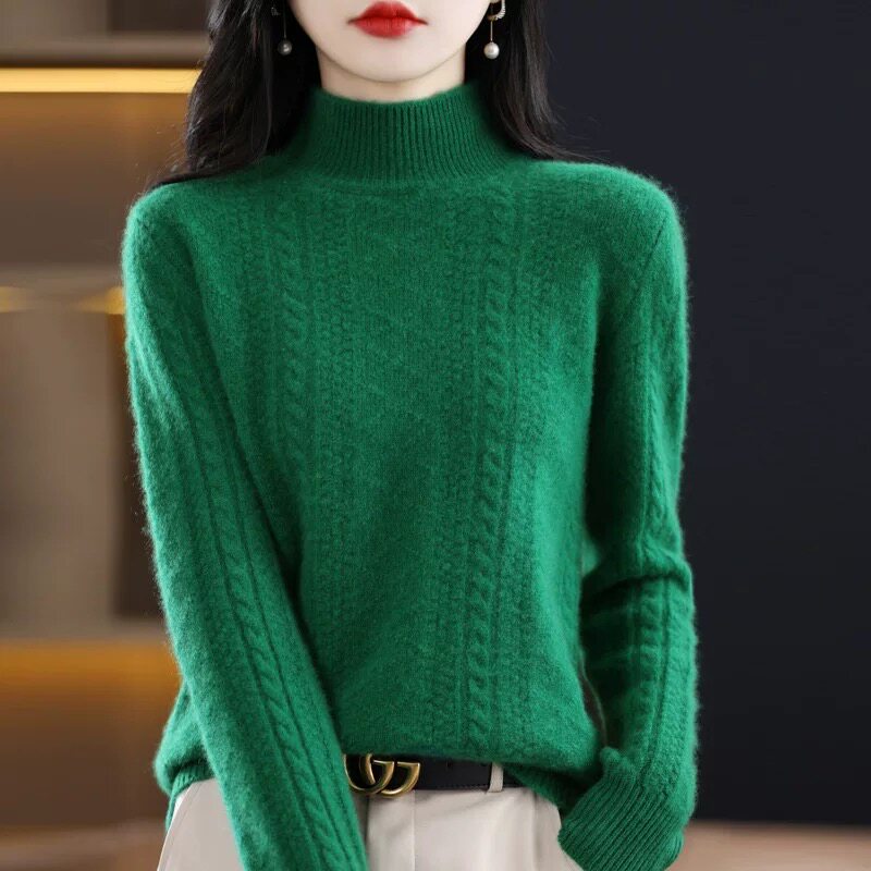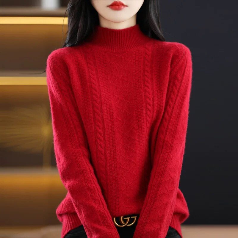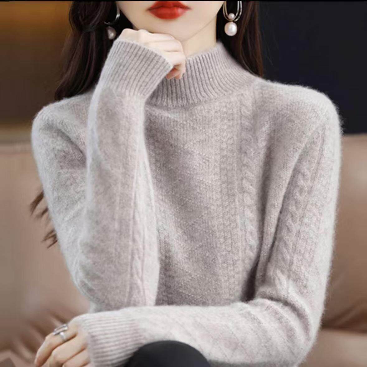 淘宝鄂尔多斯市产羊绒衫女半高领宽松大码加厚款针织毛衣保暖打底衫