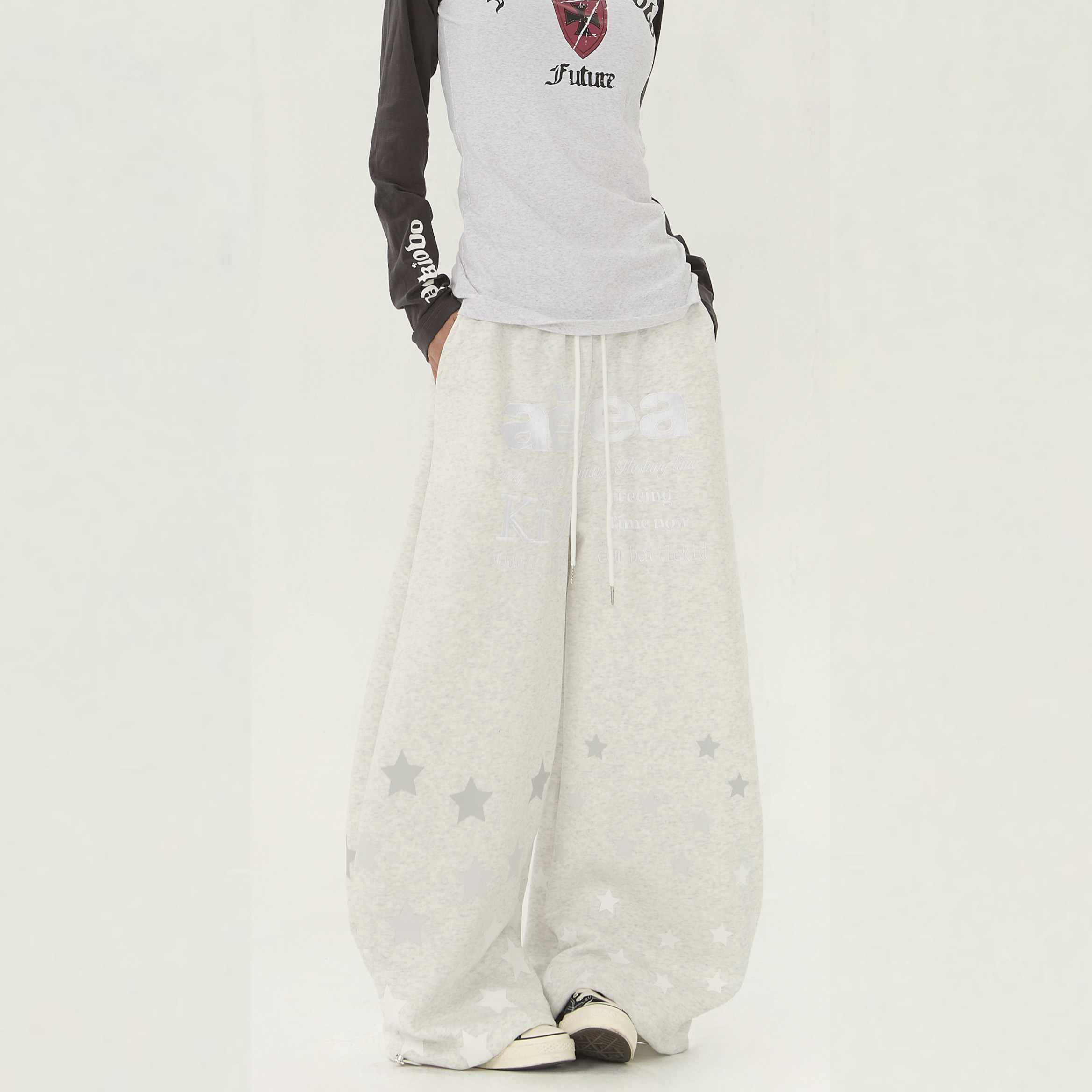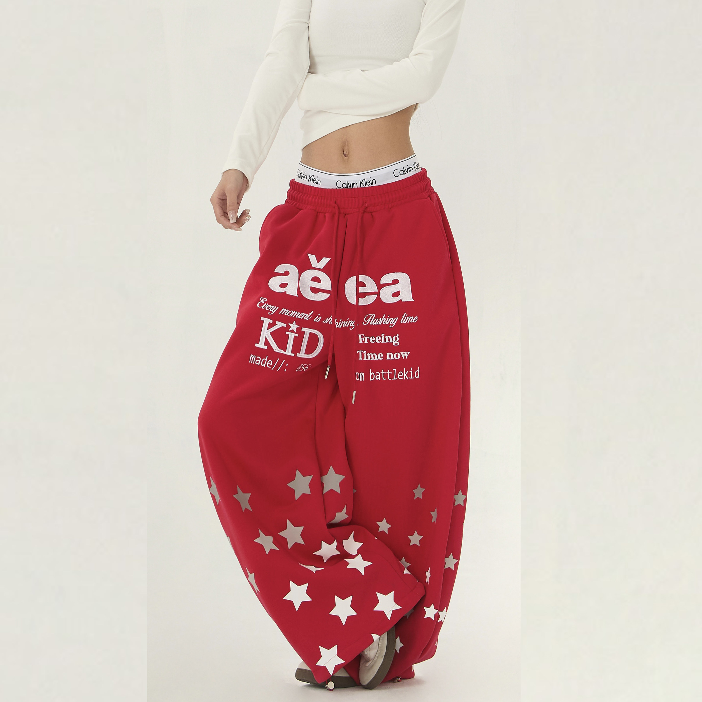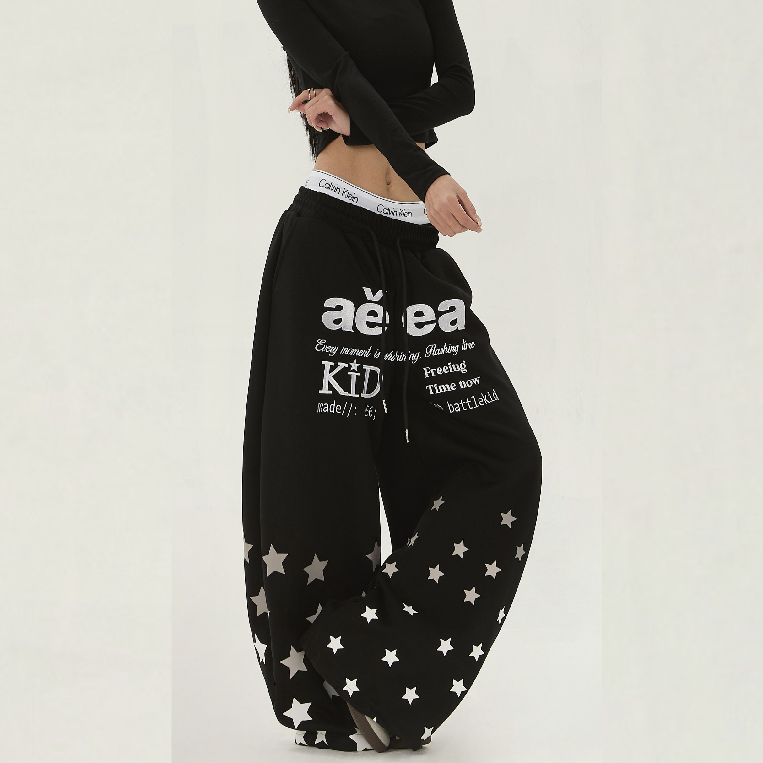 【零碎岛屿】美式复古星星字母印花休闲卫裤男女直筒街头阔腿长裤