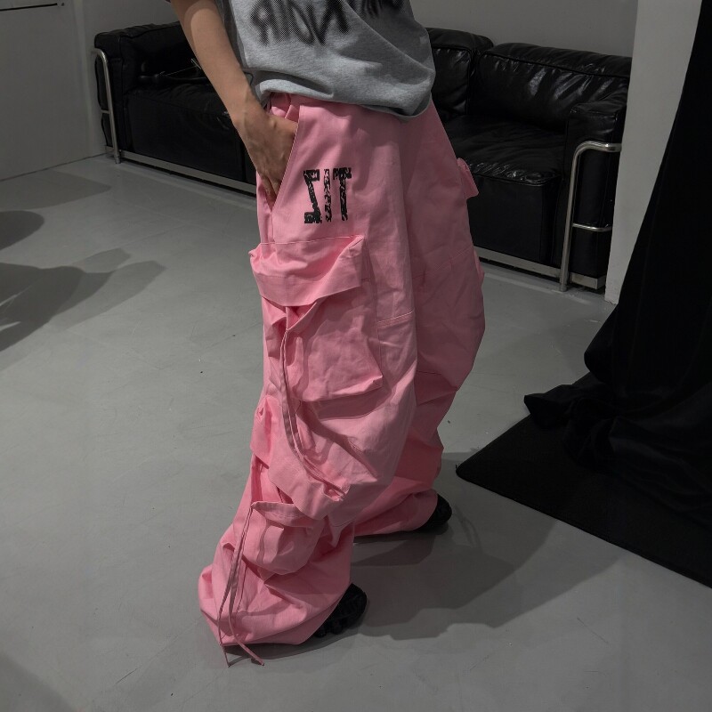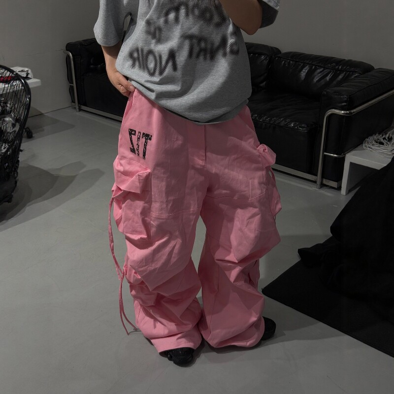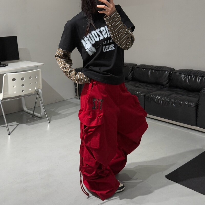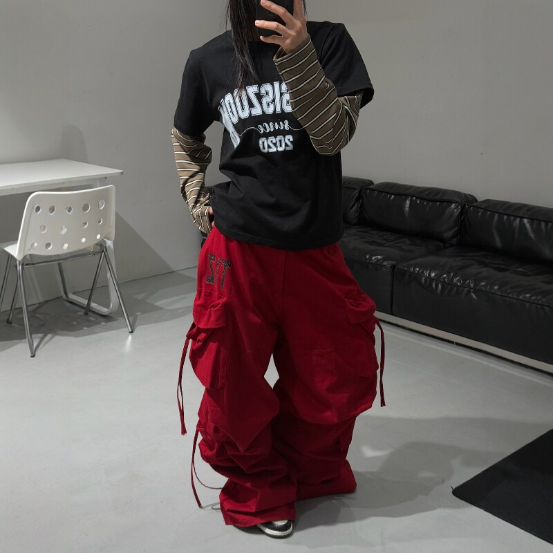 淘宝小标开门红抽绳飘带工装裤男女宽松休闲街舞速干垂感阔腿裤直筒裤