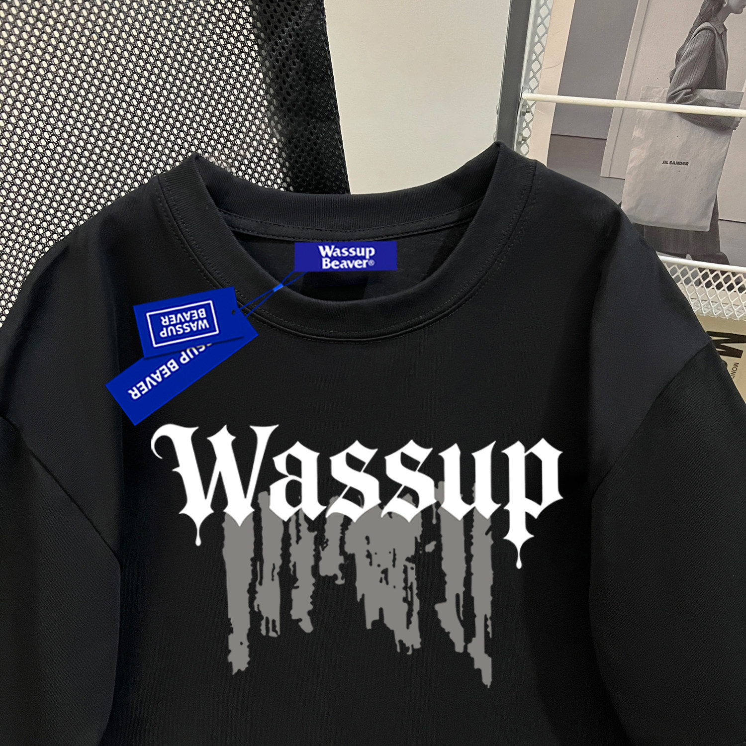 WASSUP BEAVER国潮纯棉短袖t恤男女夏季高街字母印花宽松情侣上衣