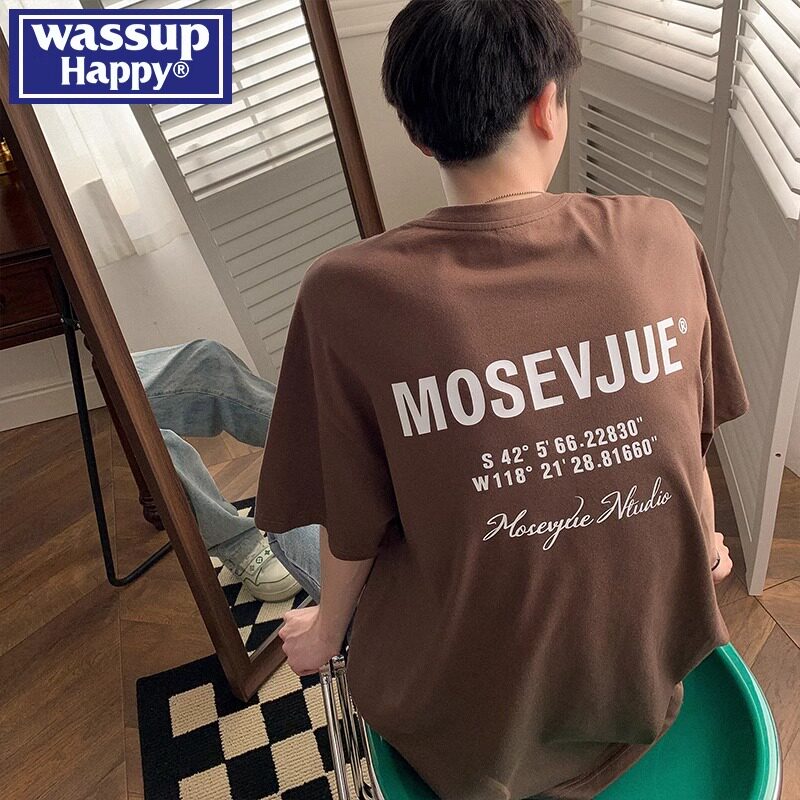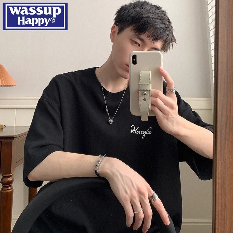 wassup happy美式重磅短袖t恤男夏季薄款ins宽松圆领字母情侣衣服