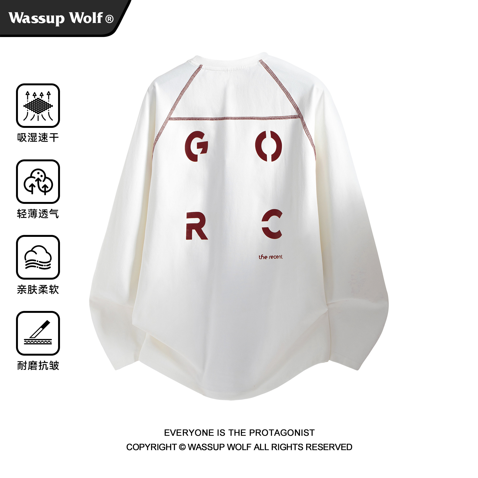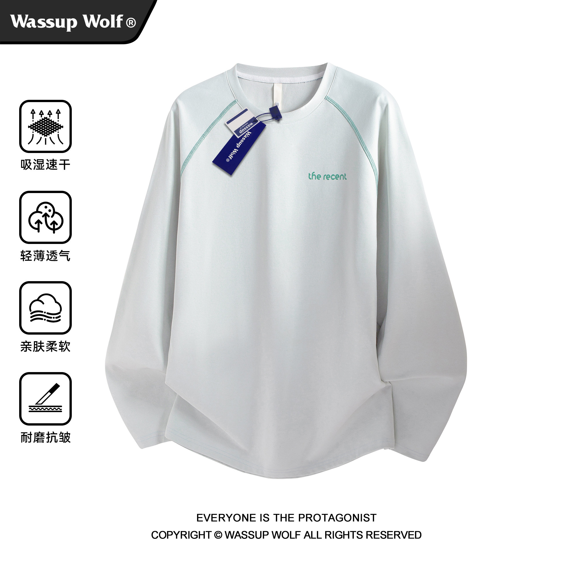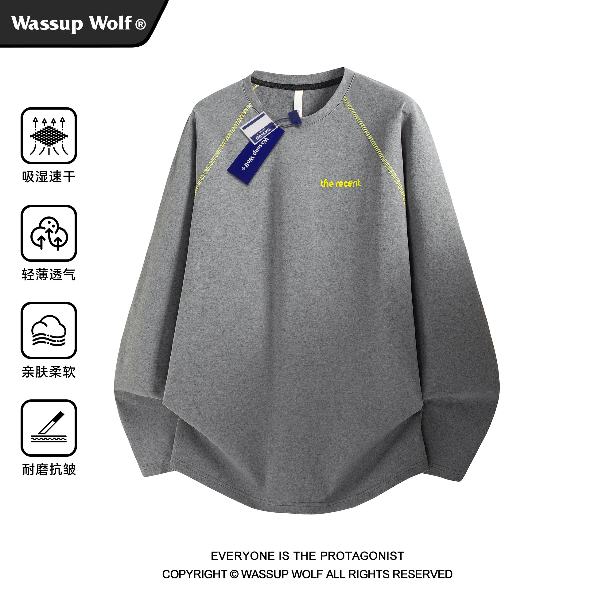 Wassup Wolf秋季速干长袖T恤男运动休闲抗菌透气羽毛球服情侣上衣