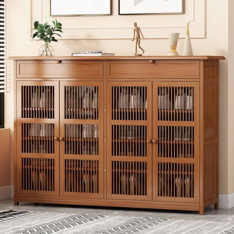 纯楠竹鞋柜家用小窄有门入户门口鞋架坐凳一体门外实木竹子收纳架