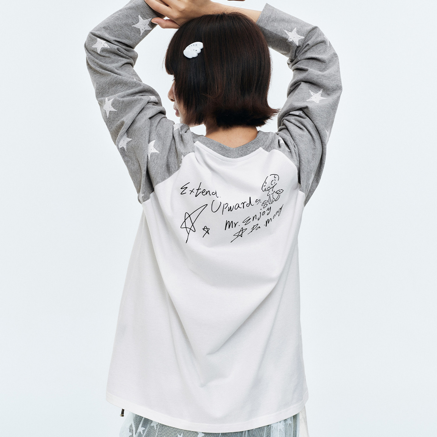 --------------------- MEDM 手写涂鸦印花星星满印休闲插肩长袖T恤潮流男女同款宽松上衣 --------------------- --------------------- 【原价】189元 【券后价】129元