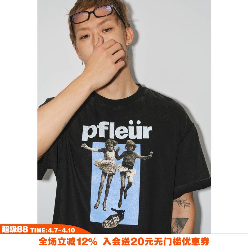 --------------------- NOVACAM 美式复古vintage蓝色双胞胎印花LOGO水洗黑宽松短袖T恤 【原售价】189元 【现售价】166元 【推荐理由】