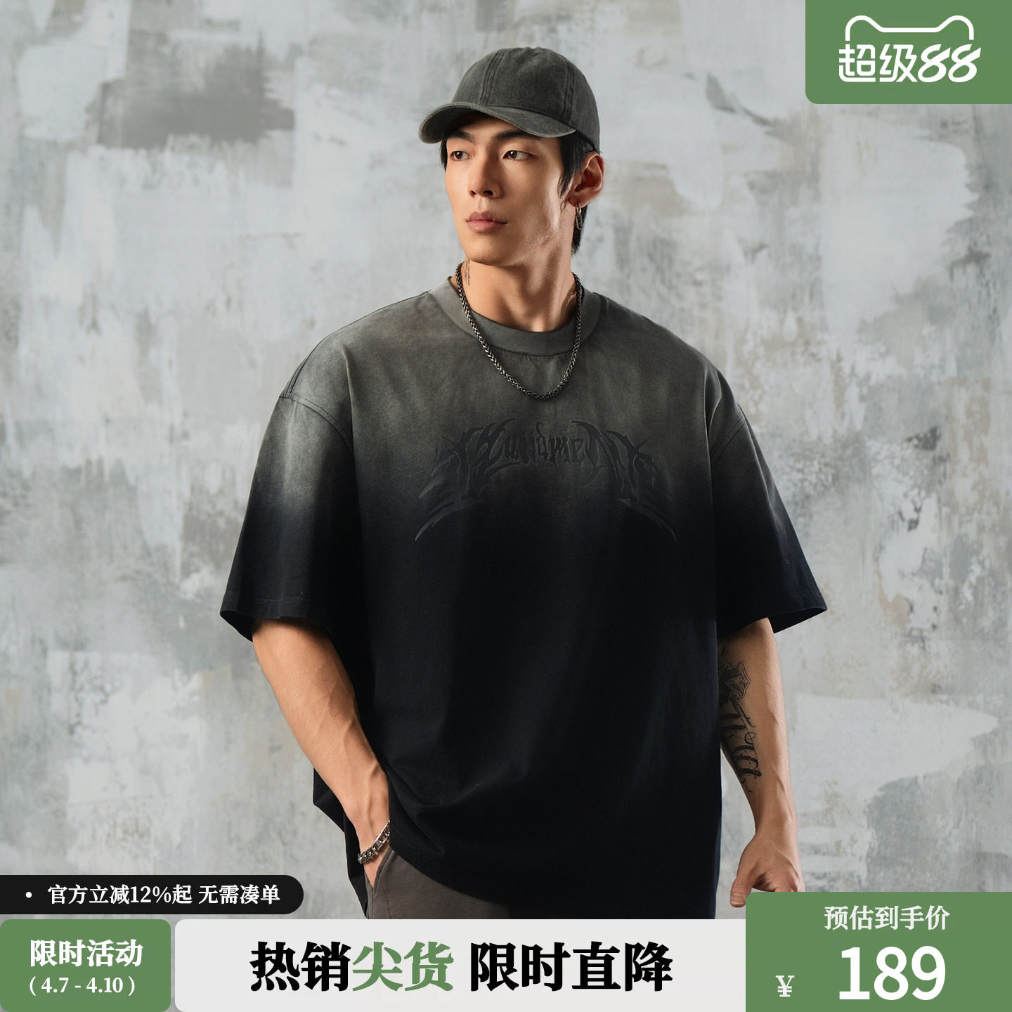 淘宝鹿家门国潮印花短袖T恤男夏季新款炒色渐变健身上衣大码运动半袖