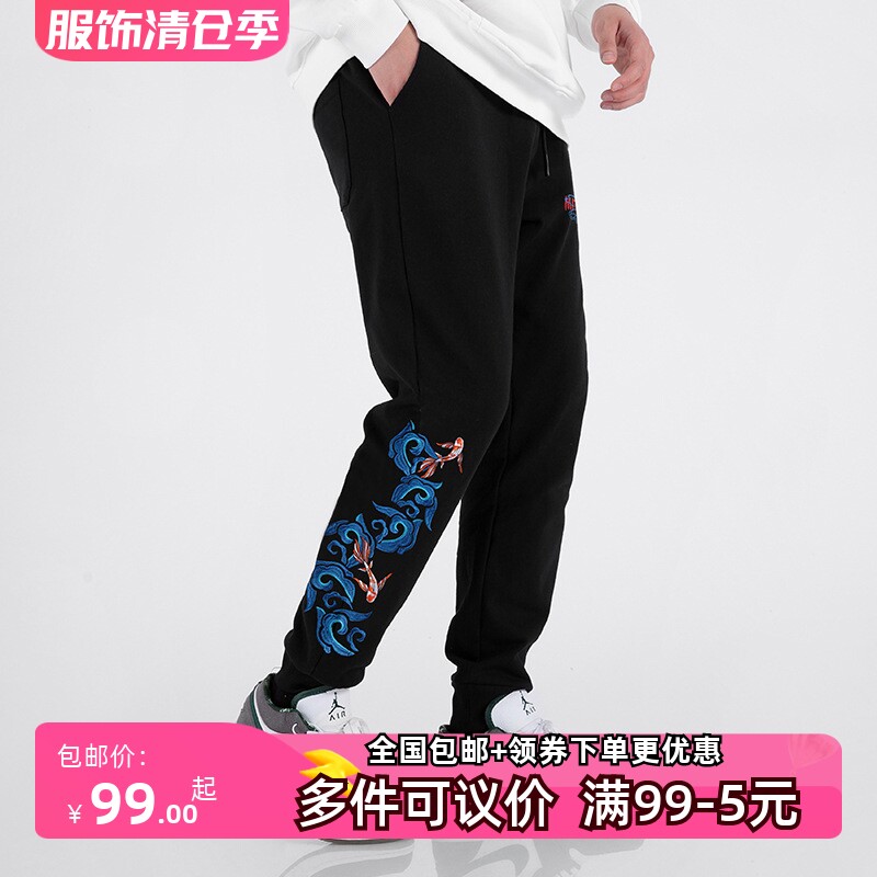 --------------------- 国潮秋冬加绒士裤子黑色纯棉卫裤宽松刺绣束脚裤休闲裤运动裤潮男 --------------------- --------------------- 【原价】237元 【券后价】234元