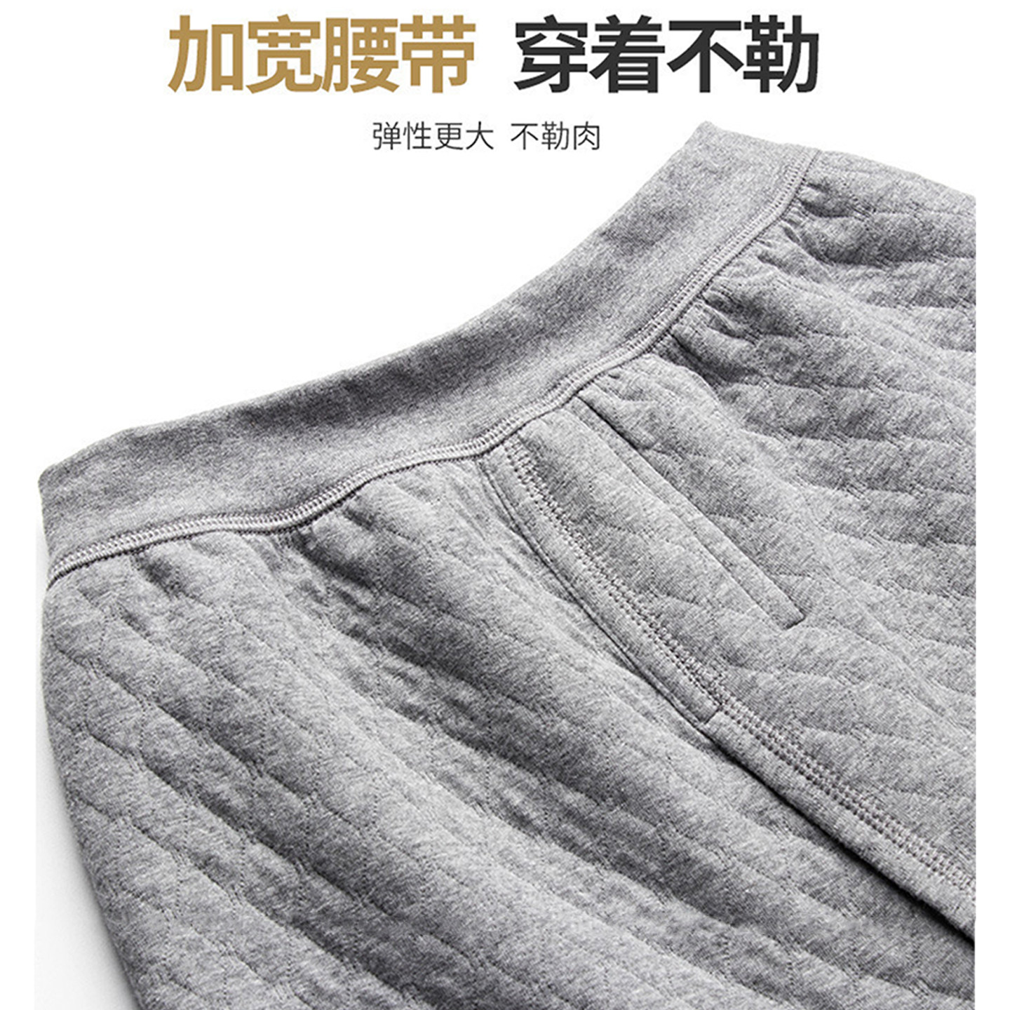 淘宝红豆中老年三层夹棉男士秋裤100%纯棉毛裤宽松打底内穿全棉保暖裤