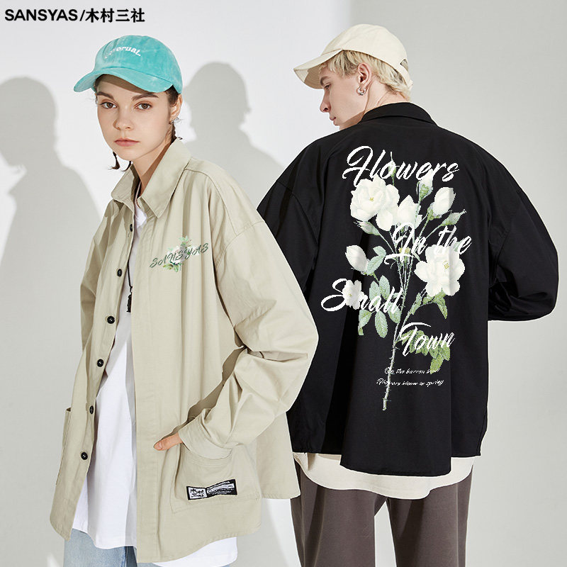 淘宝3折【断码清货】山茶花印花 男女潮流衬衫