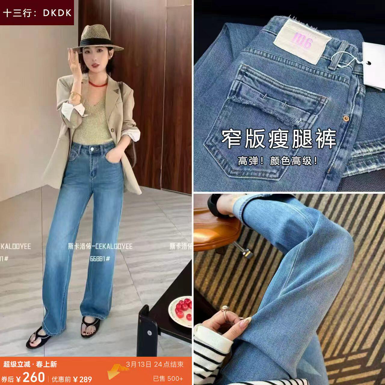 04/18W欧货高弹!腿精瘦腿裤DKDK春款高腰显瘦窄版阔腿直筒裤1687