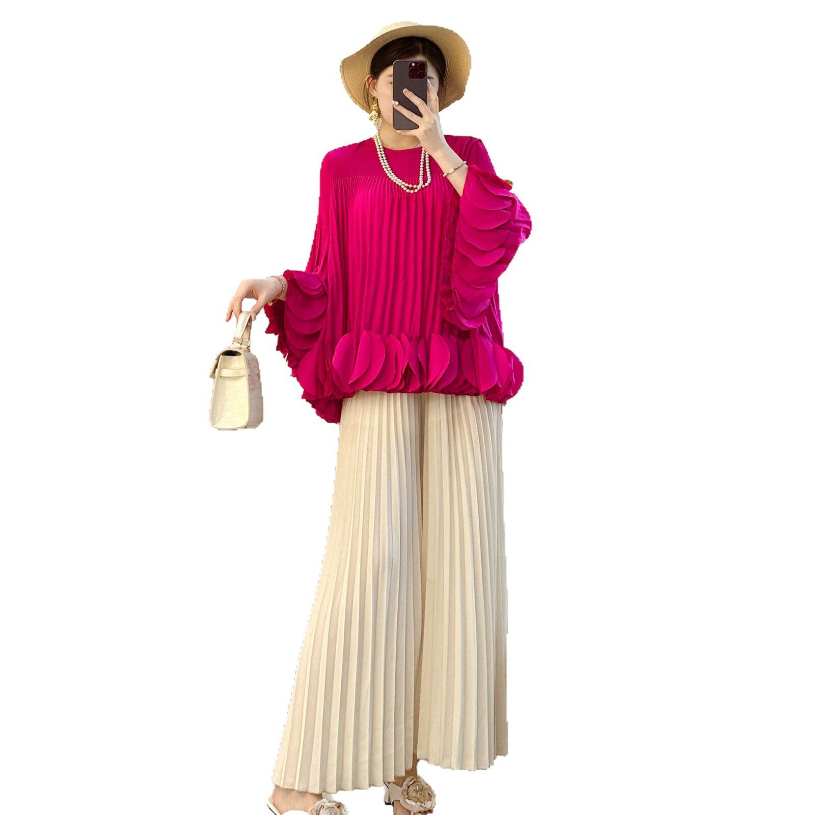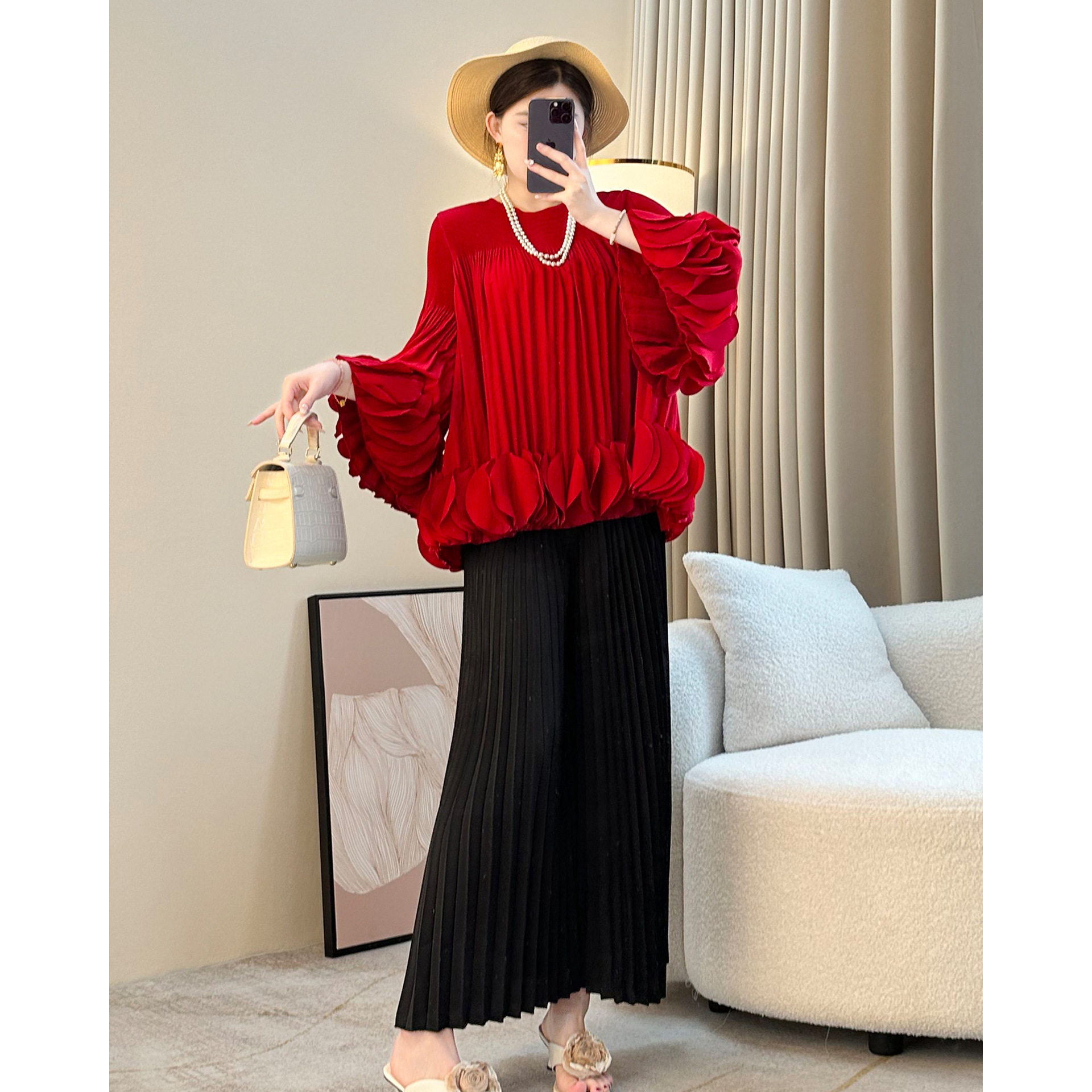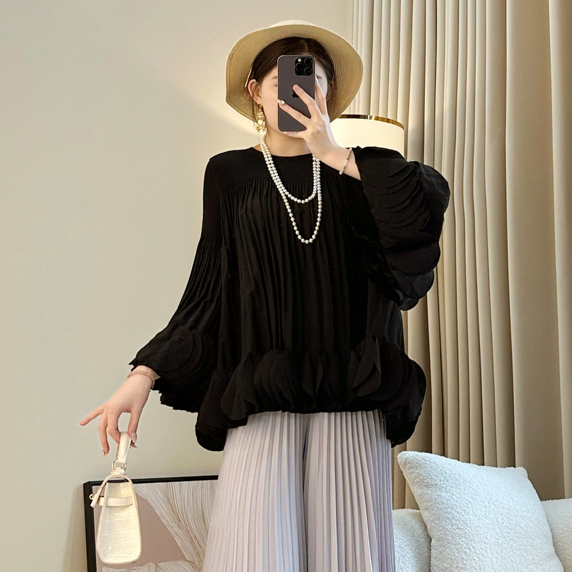 淘宝早春高级感时尚褶皱大码女装 时髦洋气宽松遮肚显瘦订花百搭上衣