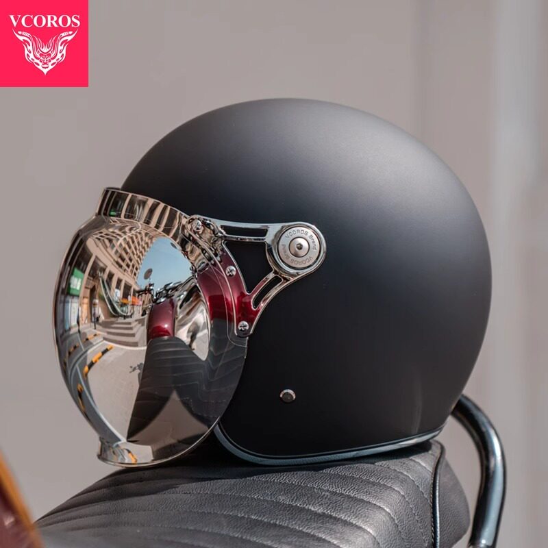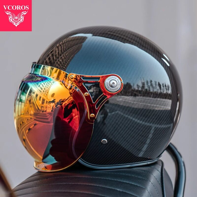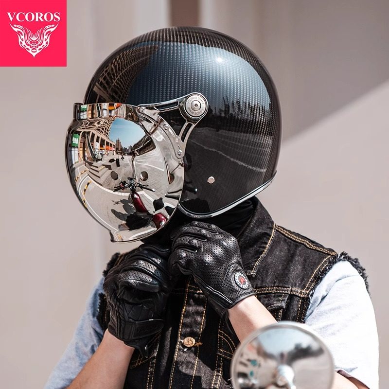 VCOROS复古头盔男摩托车碳纤维半盔女机车四分之三盔巡航大码超轻