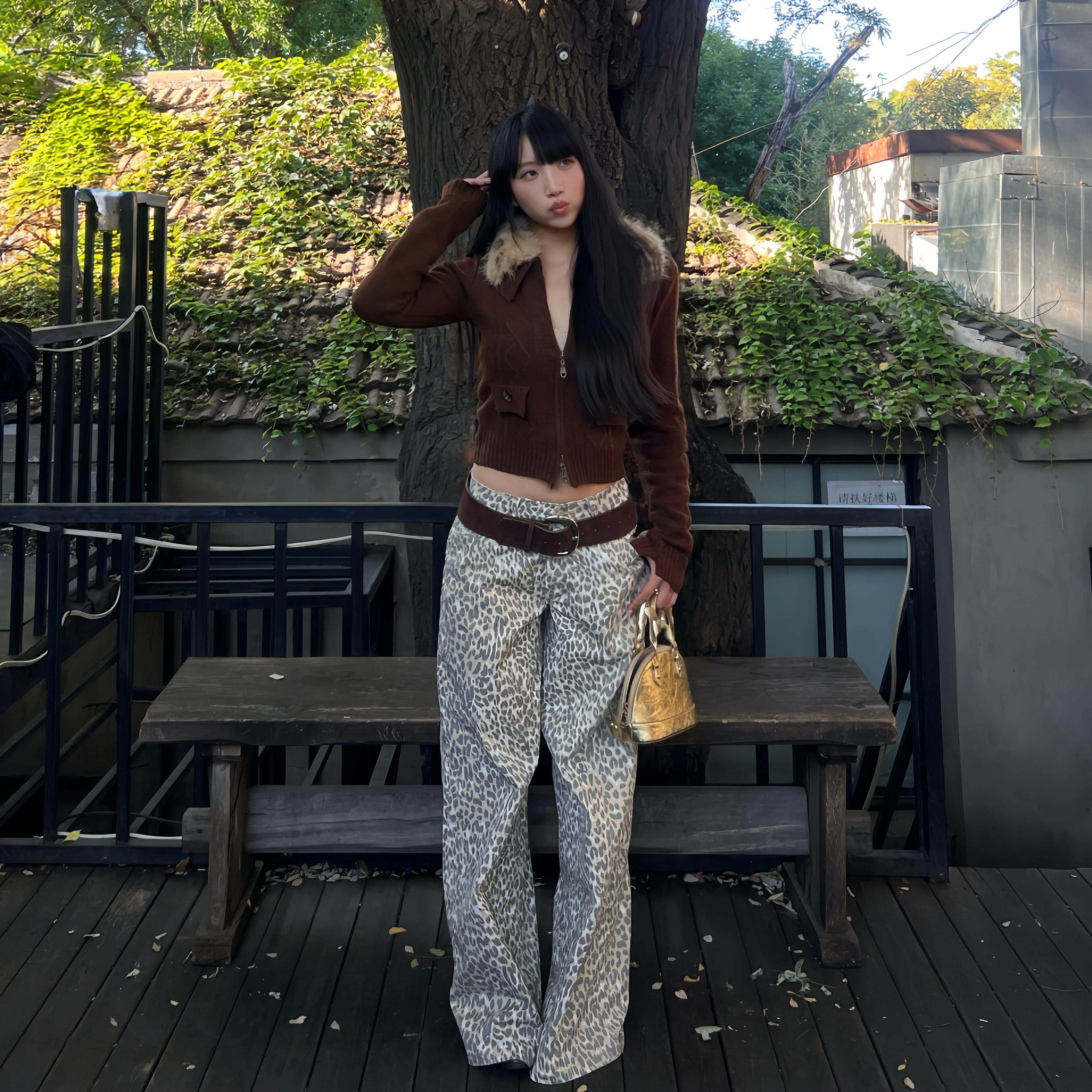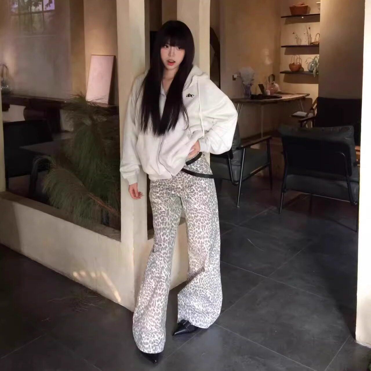 A11SLAVE豹纹长裤男女夏季美式复古宽松长裤阔腿情侣百搭拖地裤