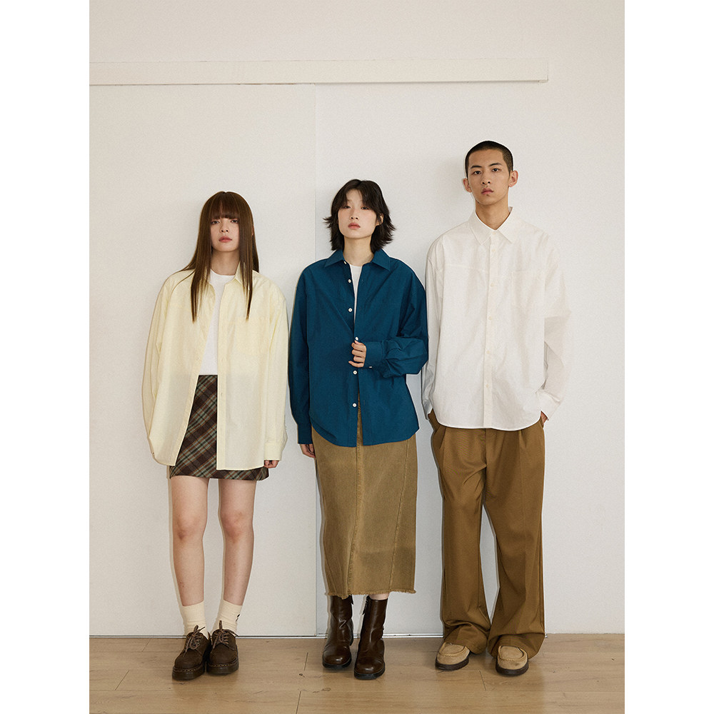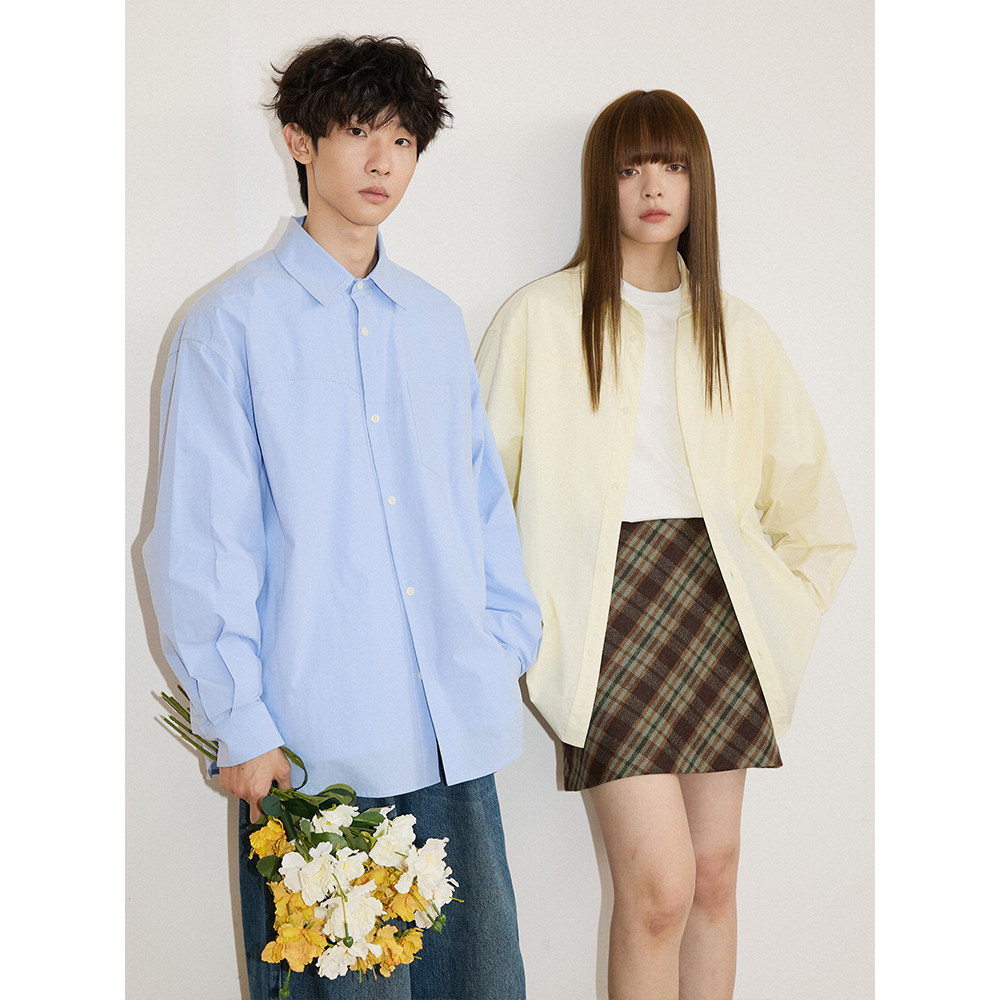 LR MADE 60支长绒棉 简约压线 百搭纯色方领长袖衬衫