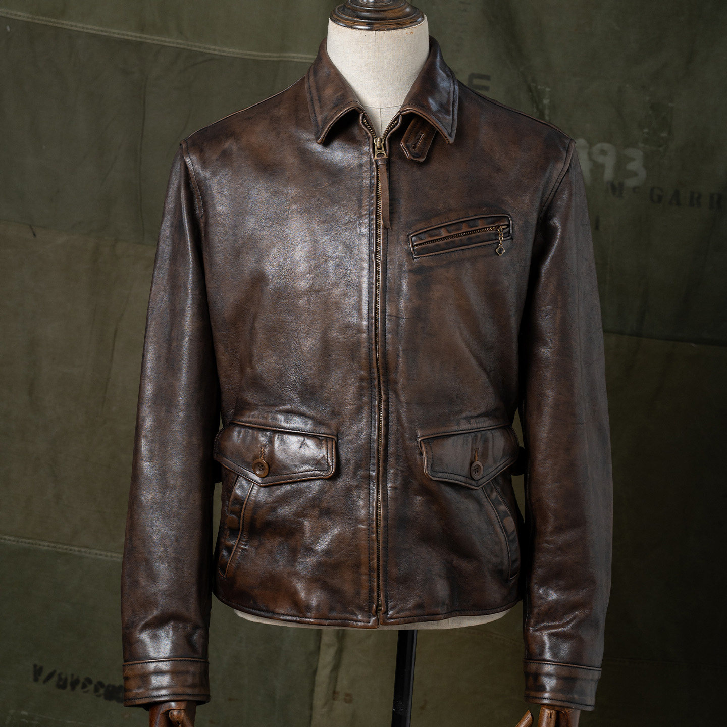 HDK(海觉)7号全植鞣全粒面水洗油蜡机车夹克学友报童款RRL1930