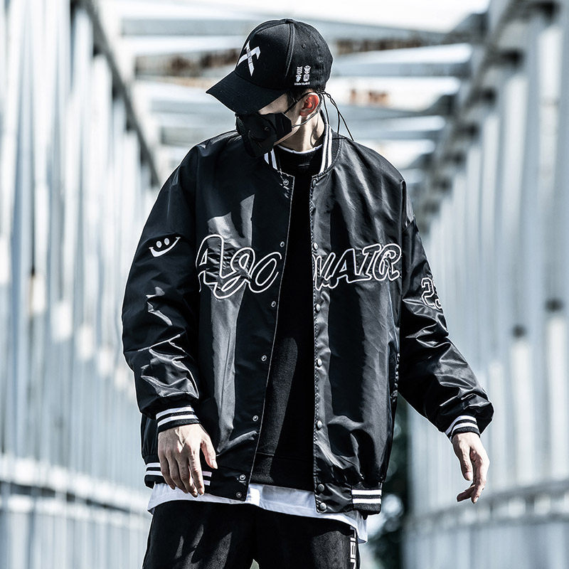 淘宝小彬国潮棒球服男潮牌刺绣复古秋季上衣外套潮牌情侣装飞行员夹克