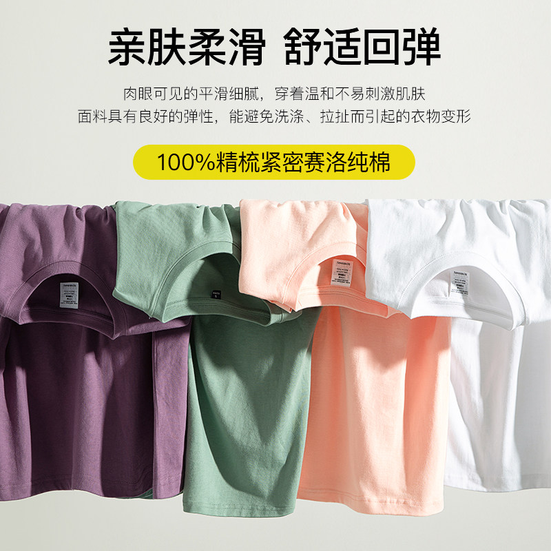 日本夏季纯棉230g重磅T恤男女宽松短袖森系情侣款圆领纯色上衣tee