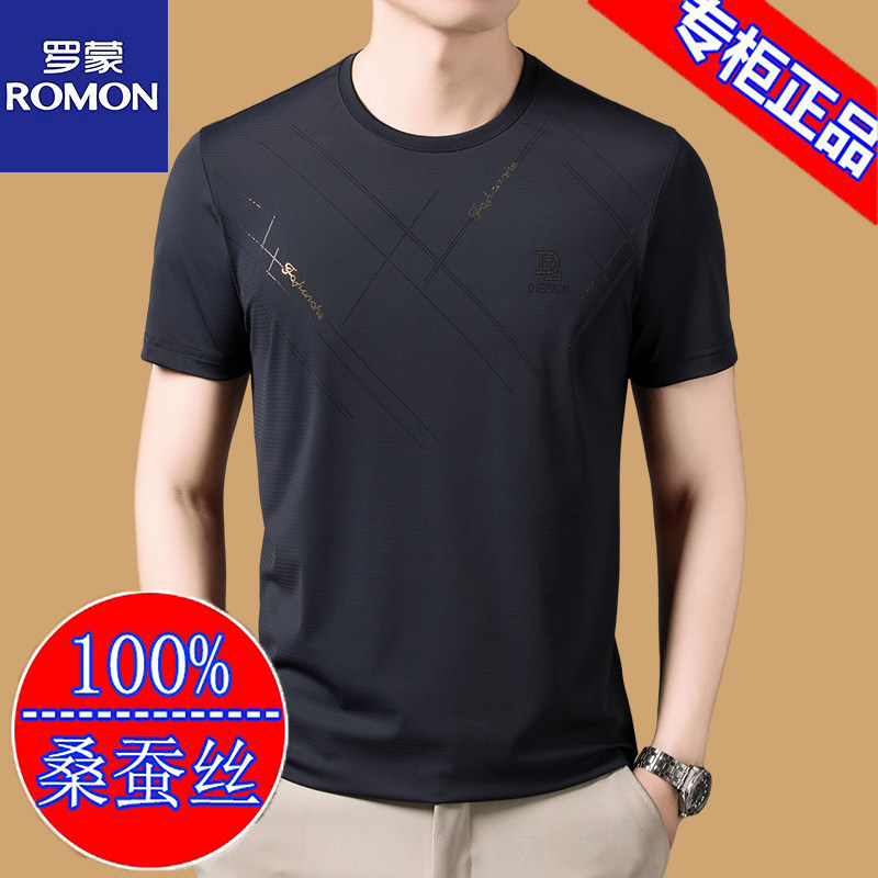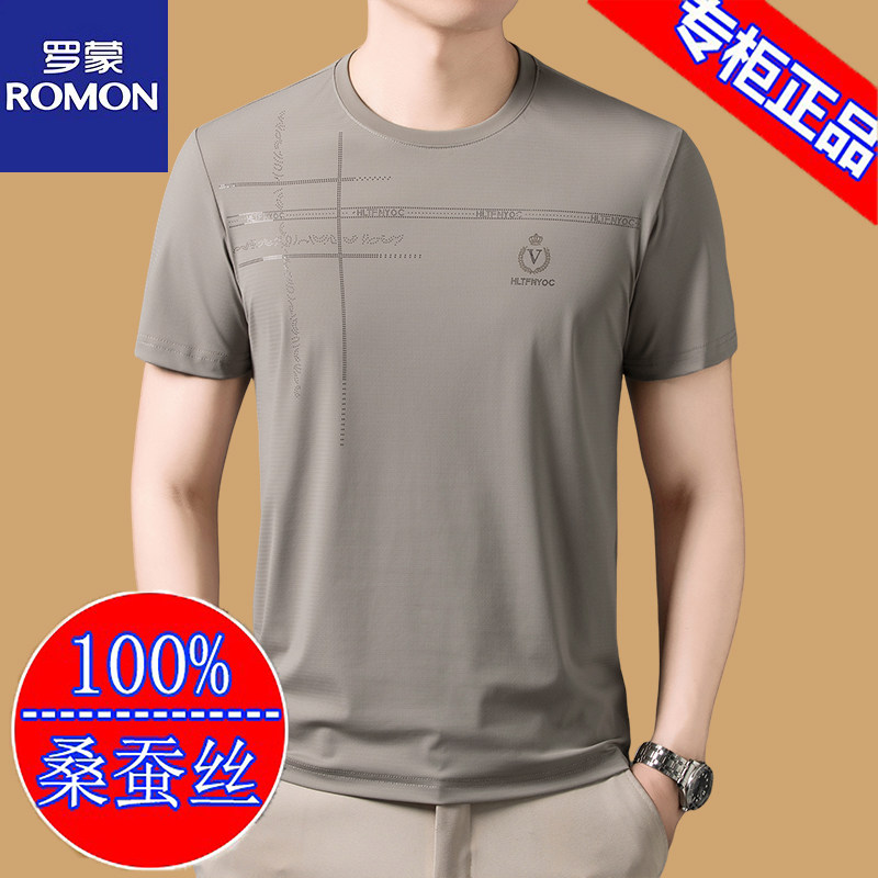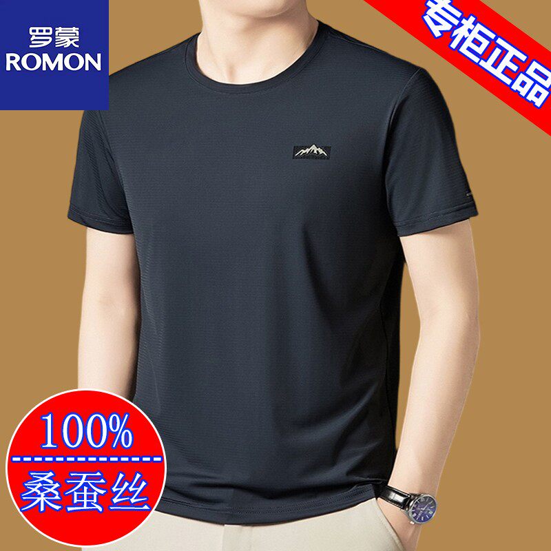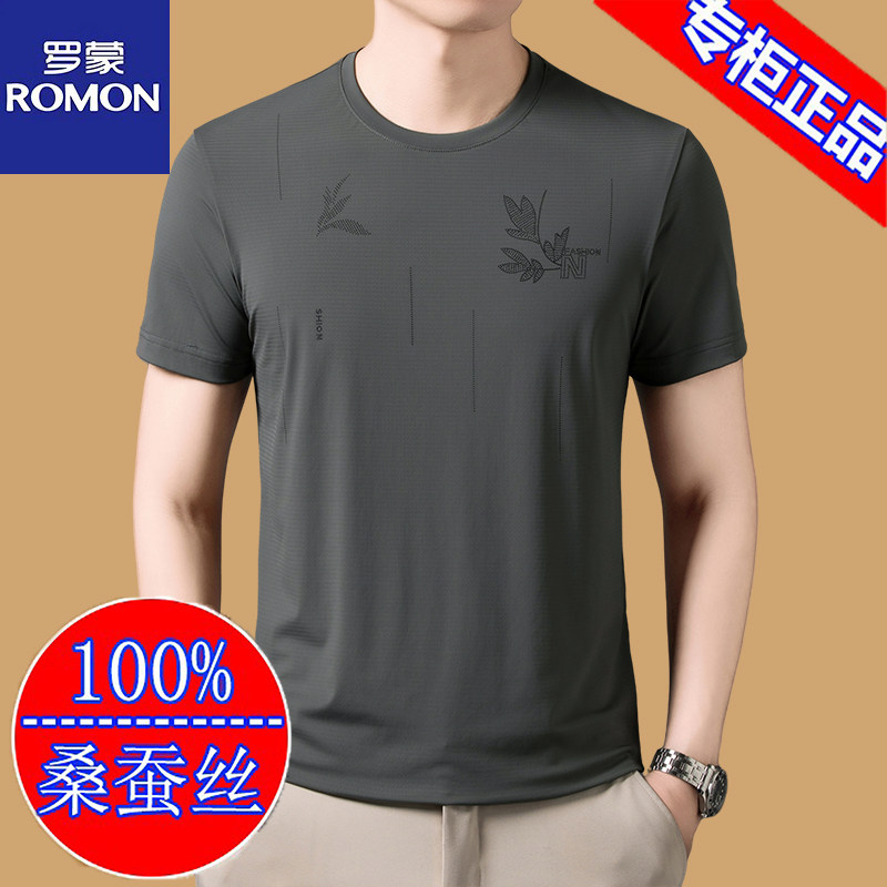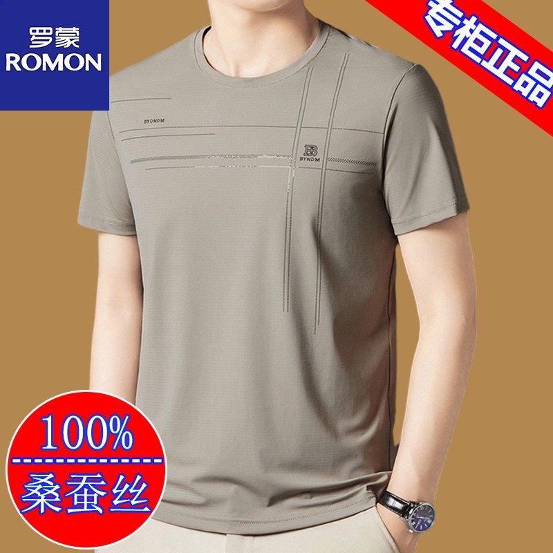 罗蒙桑蚕丝短袖t恤男士2025新款圆领体恤衫夏季冰丝半袖男上衣T
