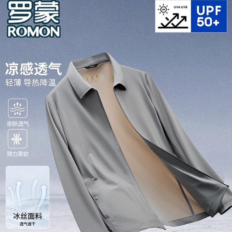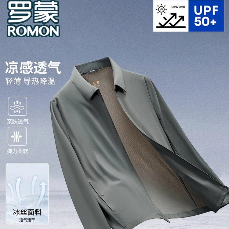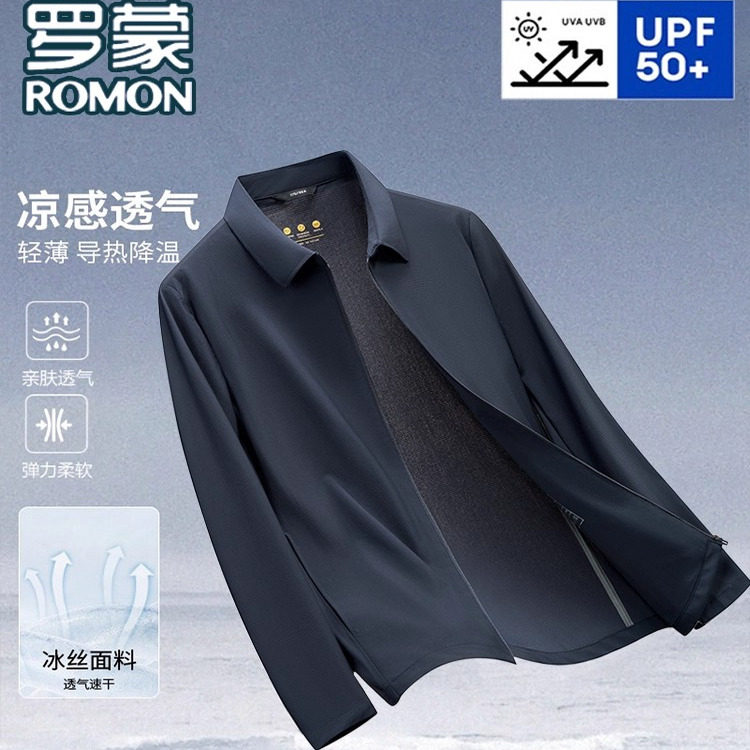 罗蒙男士冰丝防晒夹克春夏季新款商务休闲纯色抗皱薄款外套上衣男