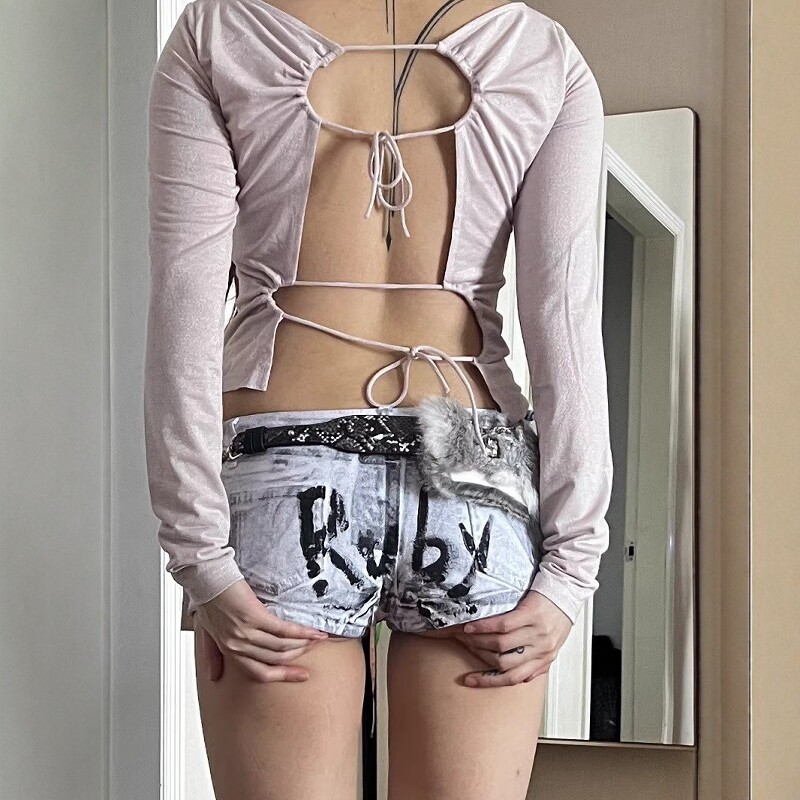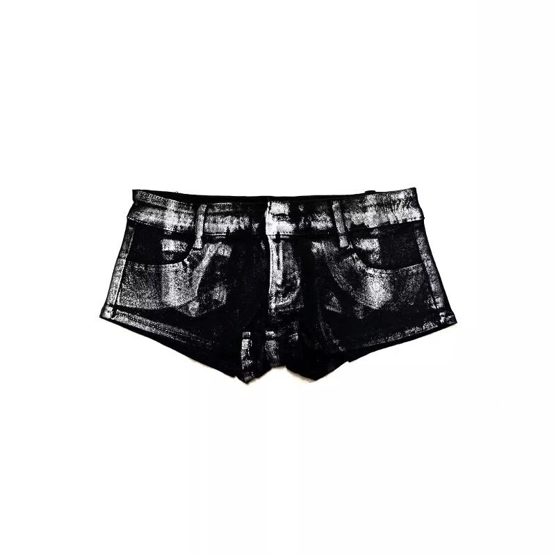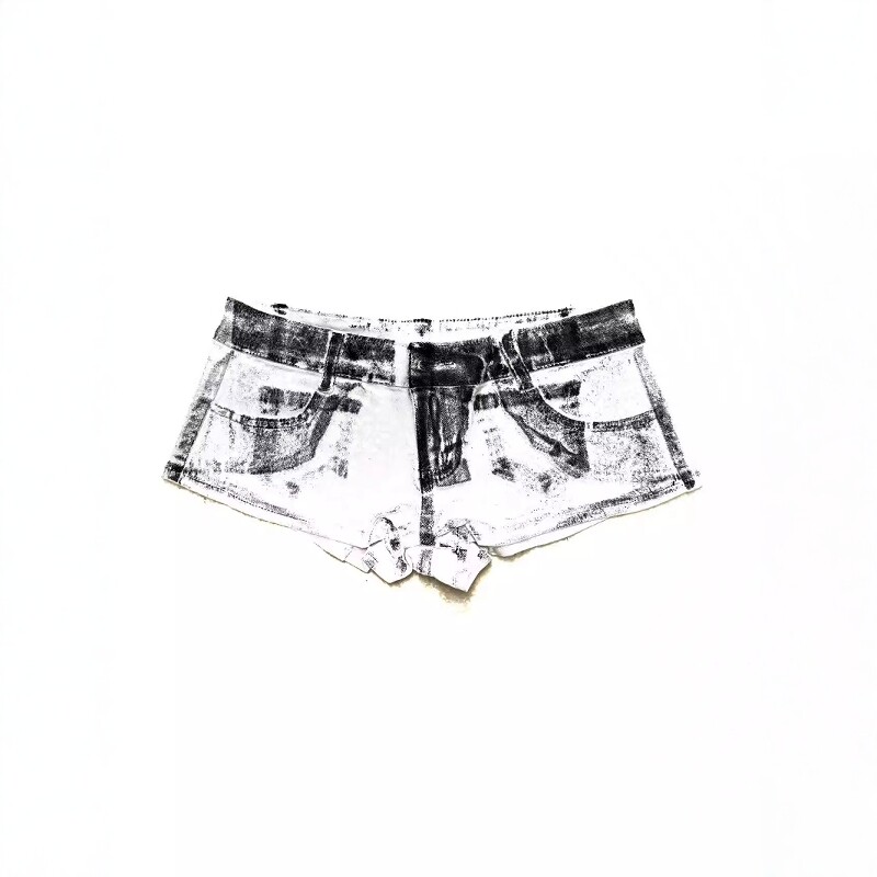 淘宝Without Me/闪粉水洗做旧牛仔短裤千禧Y2K辣妹低腰修身弹力夏短裤