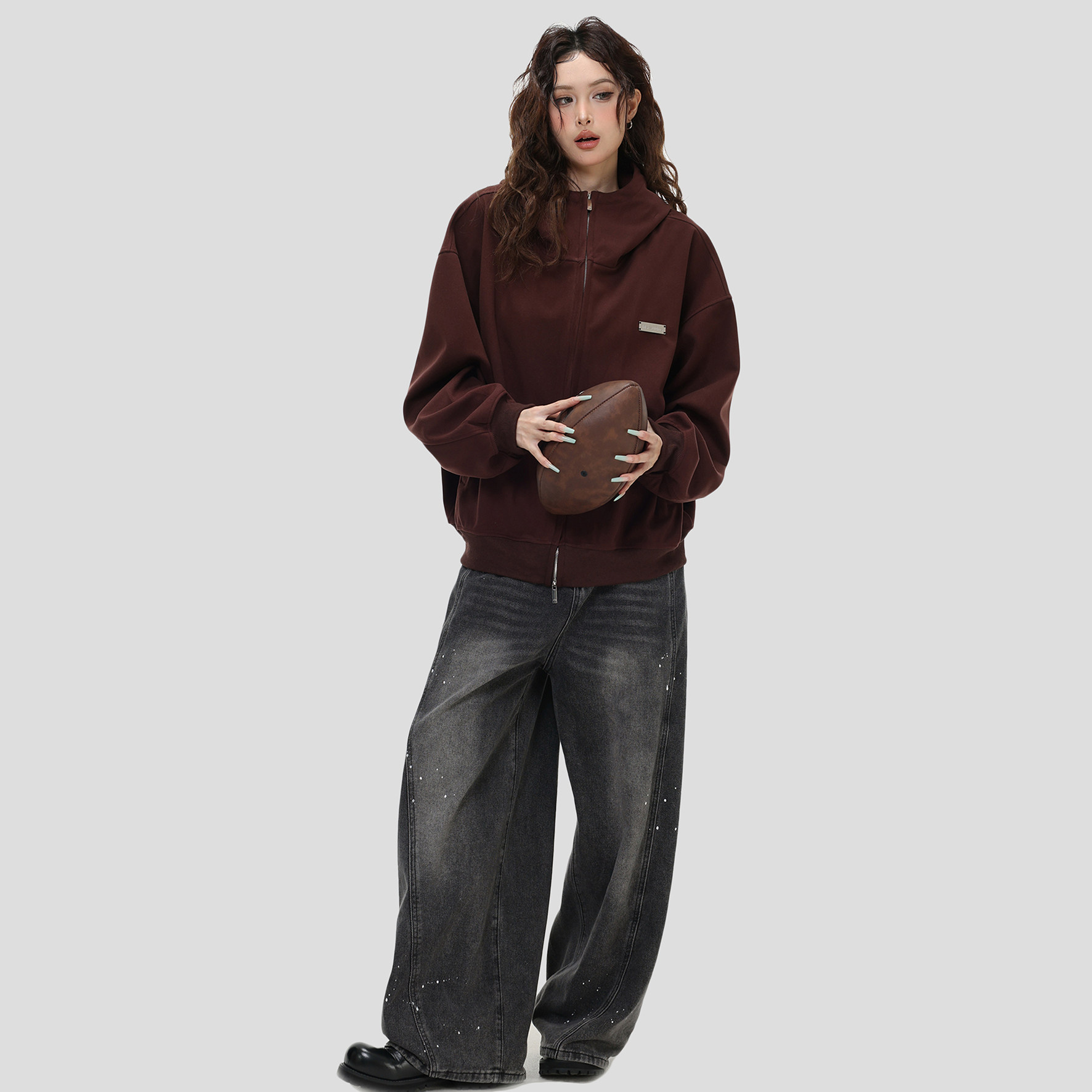 INSstudios 国潮牌情侣「高领开衫连帽卫衣」宽松双拉链开衩外套