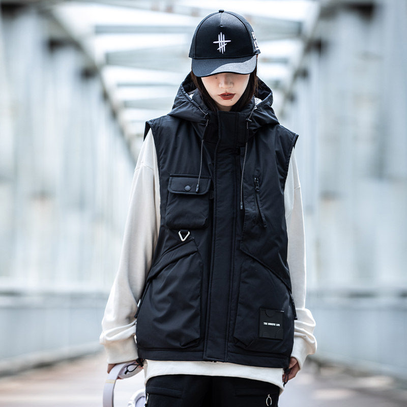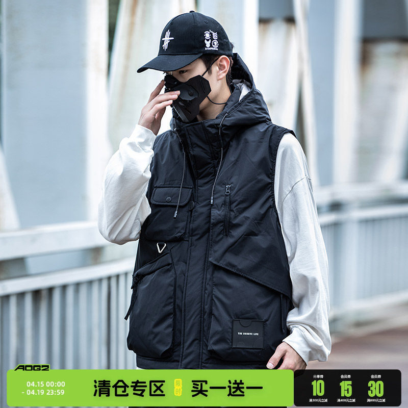 AOGZ国潮牌羽绒服马甲男冬季新款连帽马夹背心机能风情侣工装外套