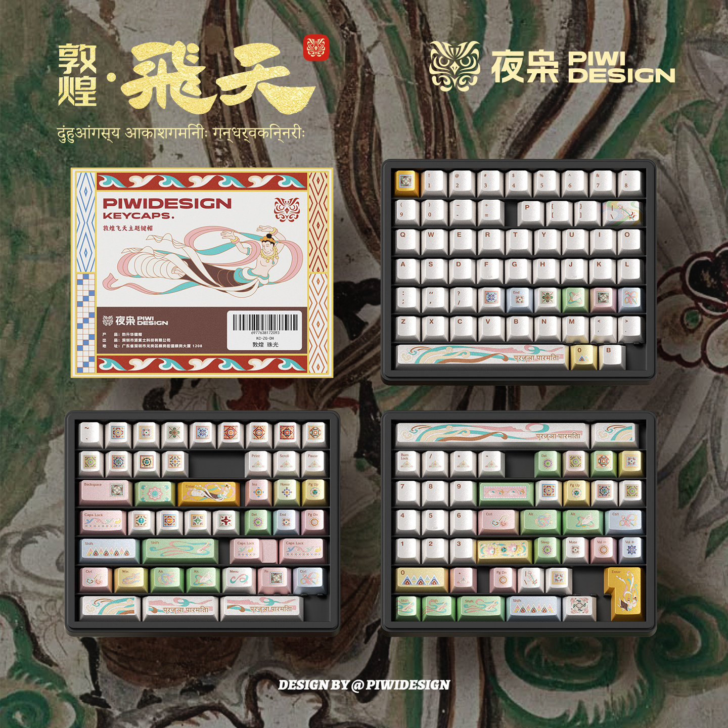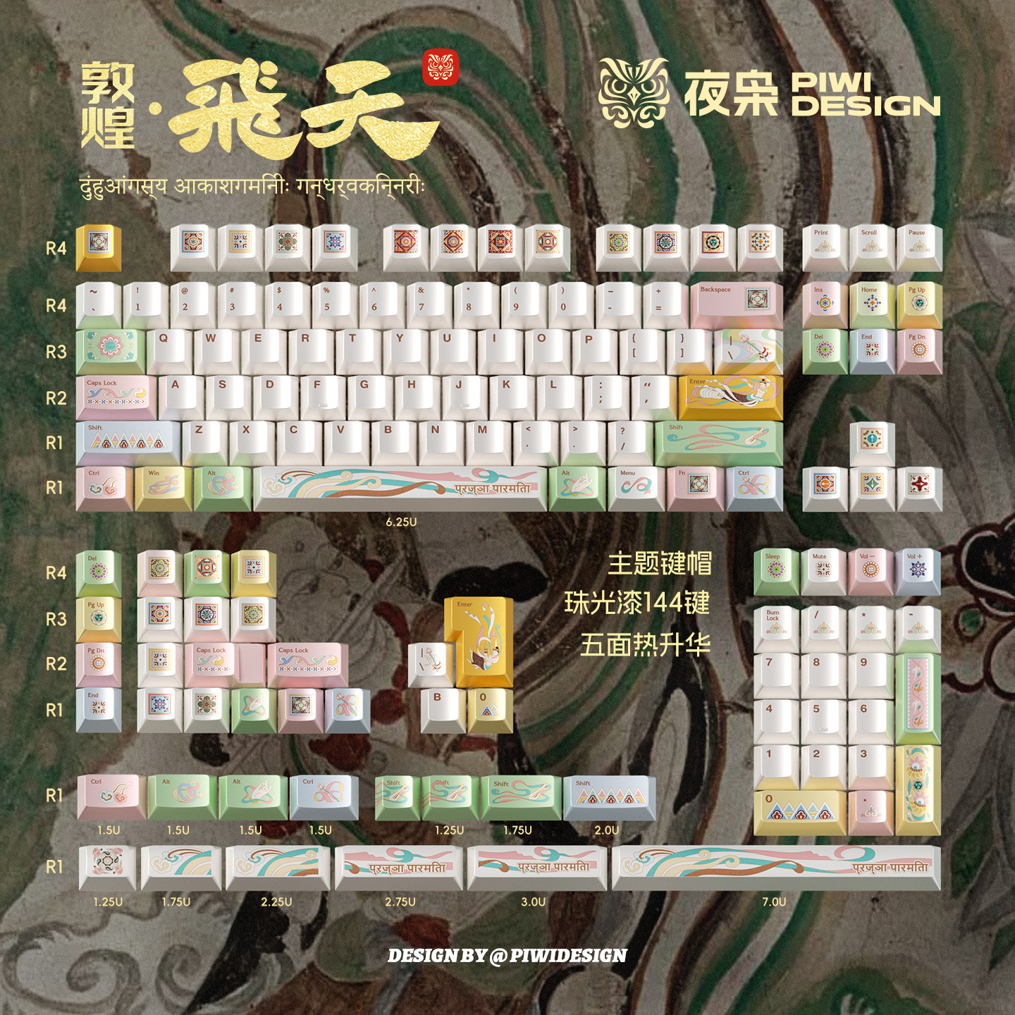 --------------------- PIWIDESIGN-敦煌飞天主题键帽国潮珠光漆五面热升华原厂高度144键 【原售价】299元 【现售价】263元 【推荐理由】